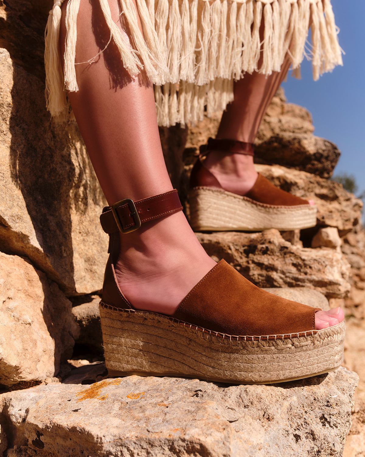 Nothing says summer quite like a pair of espadrille sandals. The Atella is handcrafted in Spain from soft Italian suede and leather in a versatile Allspice hue and set on a jute platform wedge. The ankle strap is adjustable, so you can customize the fit.