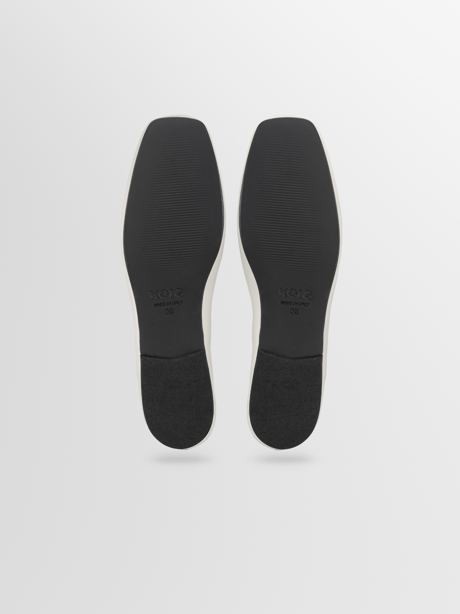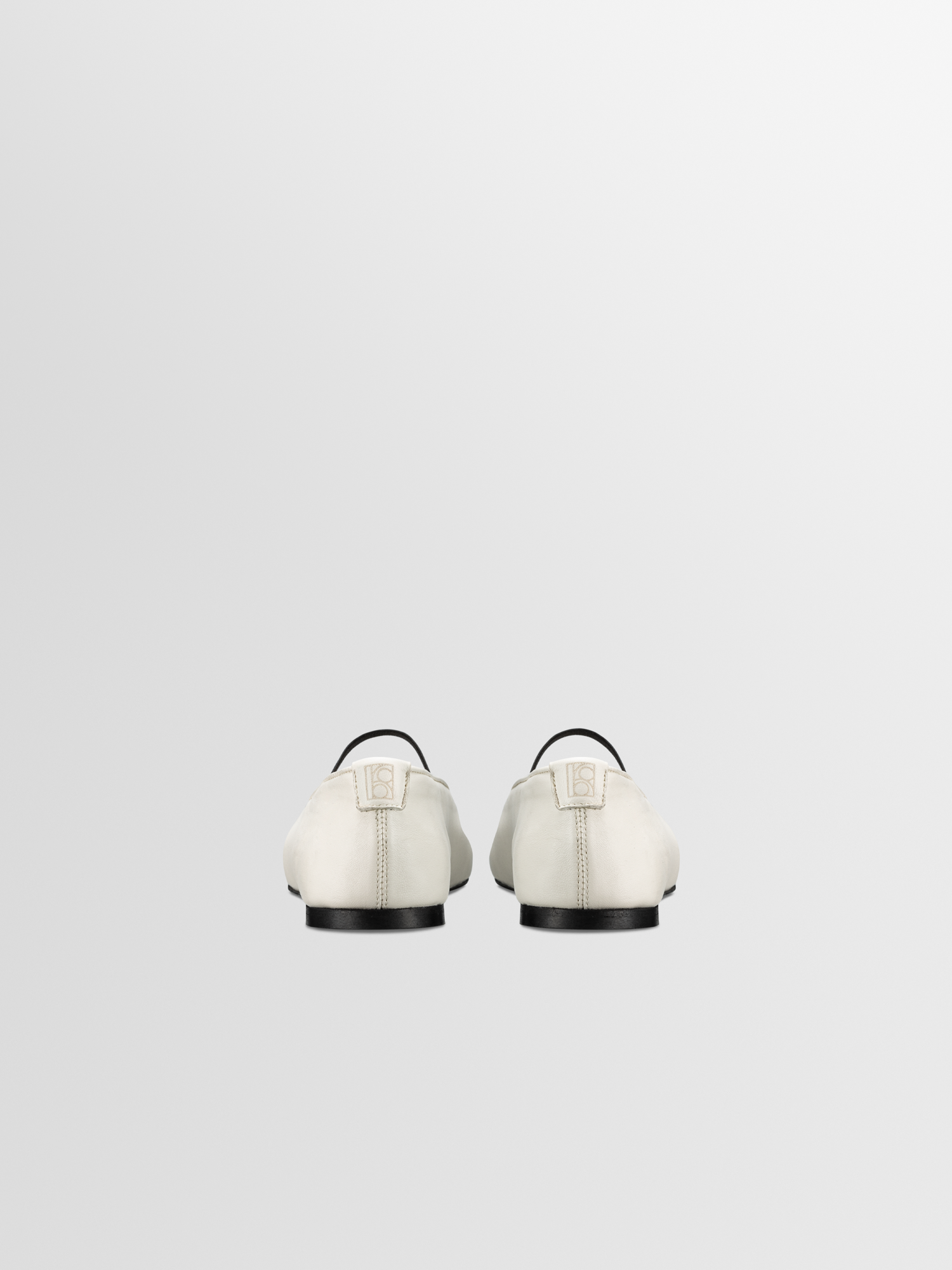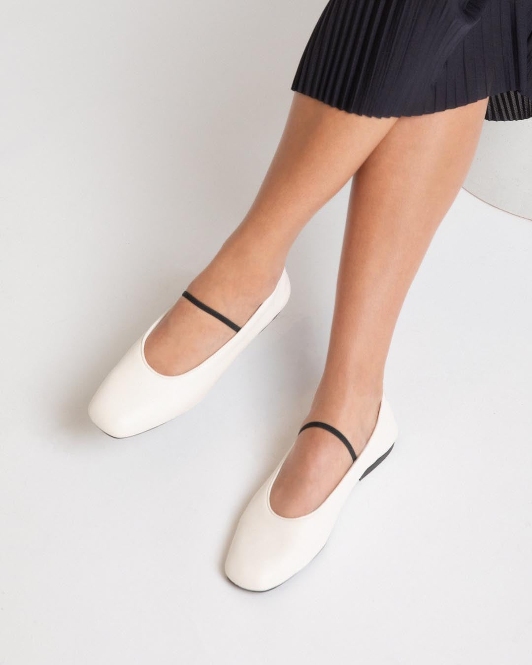 The Aurora is a modernized ballet flat with a soft square toe. It's handcrafted using full-grain Nappa leather. A thin elastic strap snugly hugs the shoe to your foot, ensuring a perfect fit. Its slim and chic appearance is an essential addition to your wardrobe.