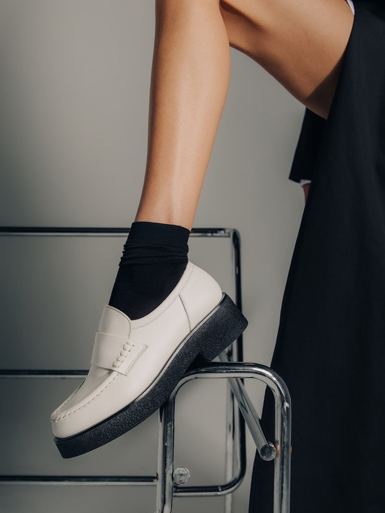 Level-up your look with the Bari. Handcrafted in Italy from LWG-certified Ivory leather, it’s mounted on a black rubber-crepe platform sole that lends the classic loafer silhouette an ultra modern feel.