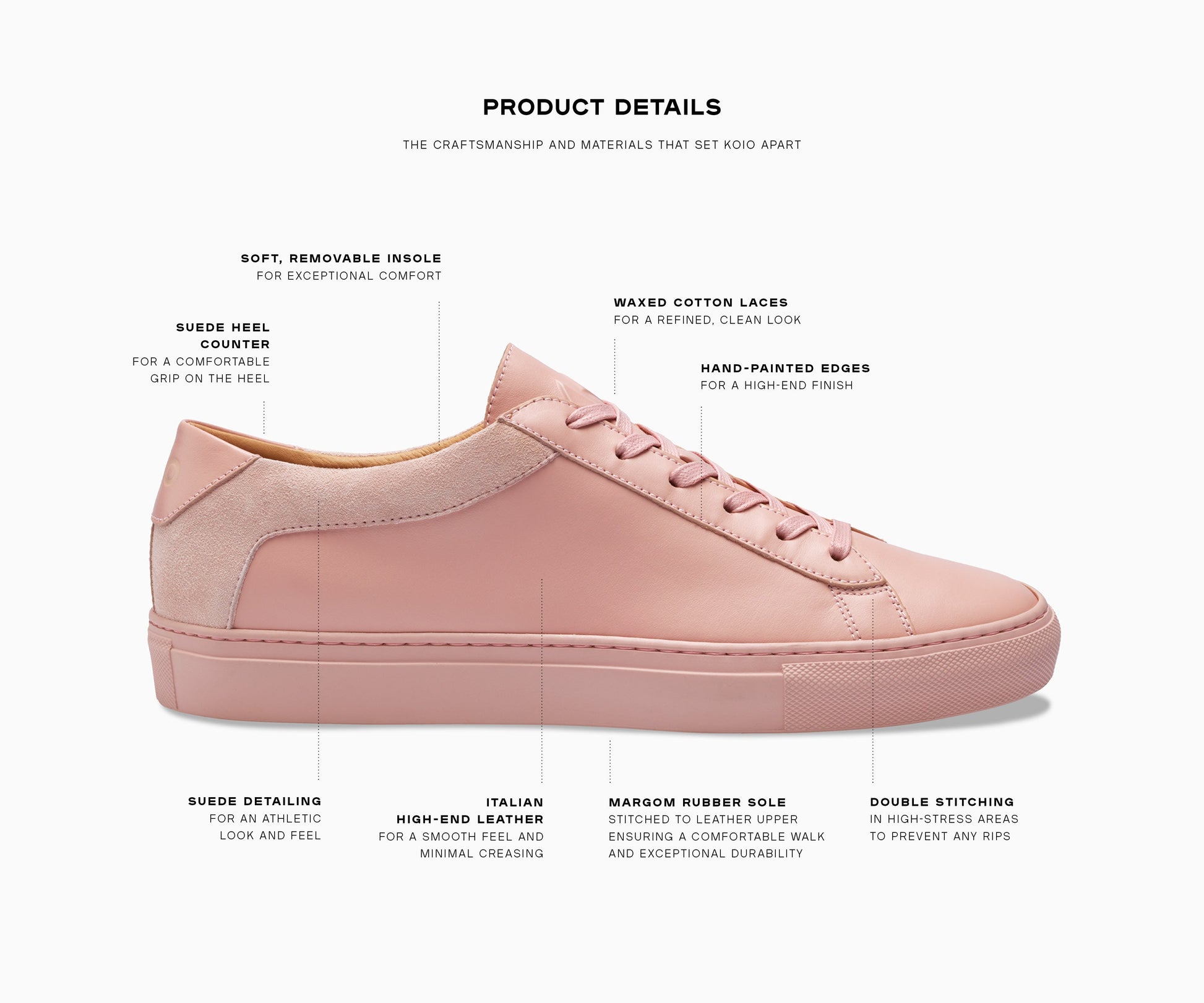 The Capri in 'Fiore'—a soft, muted-pink hue that feels just as relevant in the spring as it does in the fall. Handcrafted in Italy from full-grain leather and detailed with a tonal suede accent, it's set on a matching rubber sole for a fresh monochrome look.
