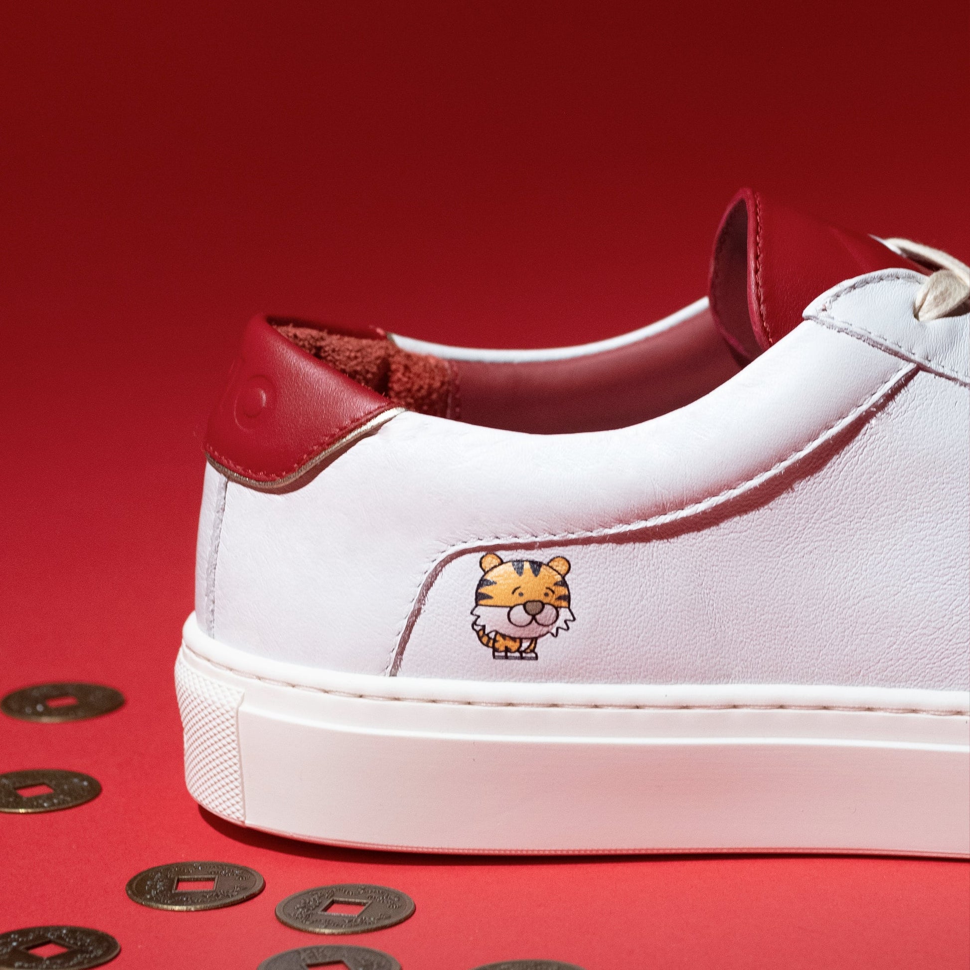 This Lunar New Year edition of our bestselling Capri sneaker features a custom illustration of a tiger—a symbol of strength and courage—drawn by designer Dahan Chung. It’s handcrafted in Italy from LWG Gold-certified white and red leather and set on a partially recycled rubber sole.