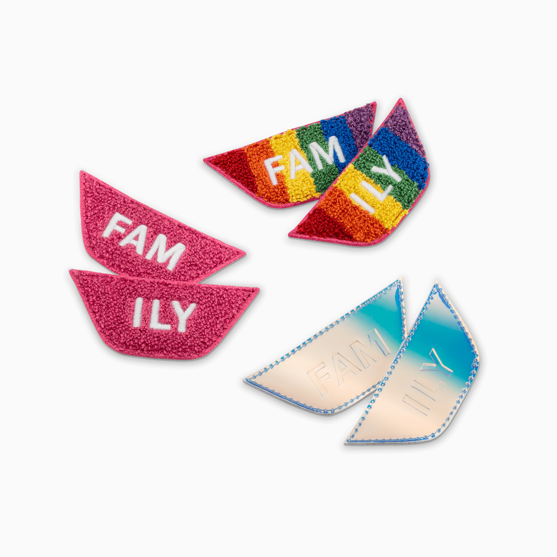 The Capri in ‘Pride’ is a celebration of the LGBTQ+ community. Handcrafted from smooth Italian leather and set on a durable rubber sole, it comes with three sets of VELCRO®-fastening heel patches featuring the letters ‘FAM’ and ‘ILY’—attach a matching pair, mix and match two different ones, or remove them entirely to reveal an embroidered logo: