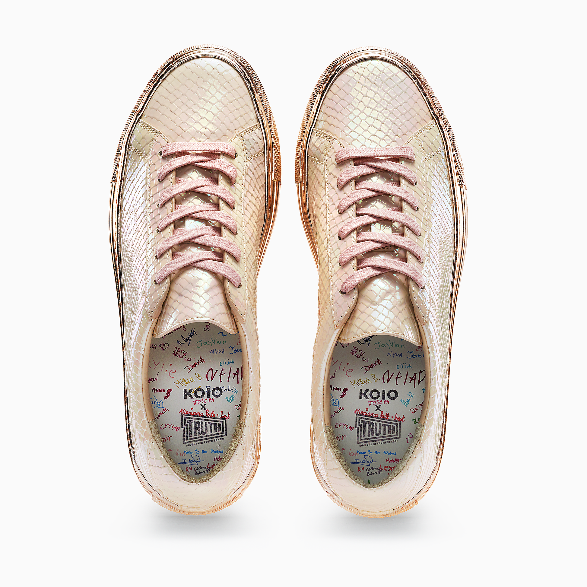 The Koio x P.S. 149 is designed by Shazia Rahman, 8th grade, for her school. Shazia won our design contest in Harlem, New York City school P.S. 149. She and her schoolmates all achieved something incredible together with their Principal, Claudia Aguirre, in the last four years. They got the school from the brink of closure because of low performance to “Good Standing”. To celebrate the success, we initiated this collab sneaker. The proceeds will finance a new kiln that the school requires for its art program.