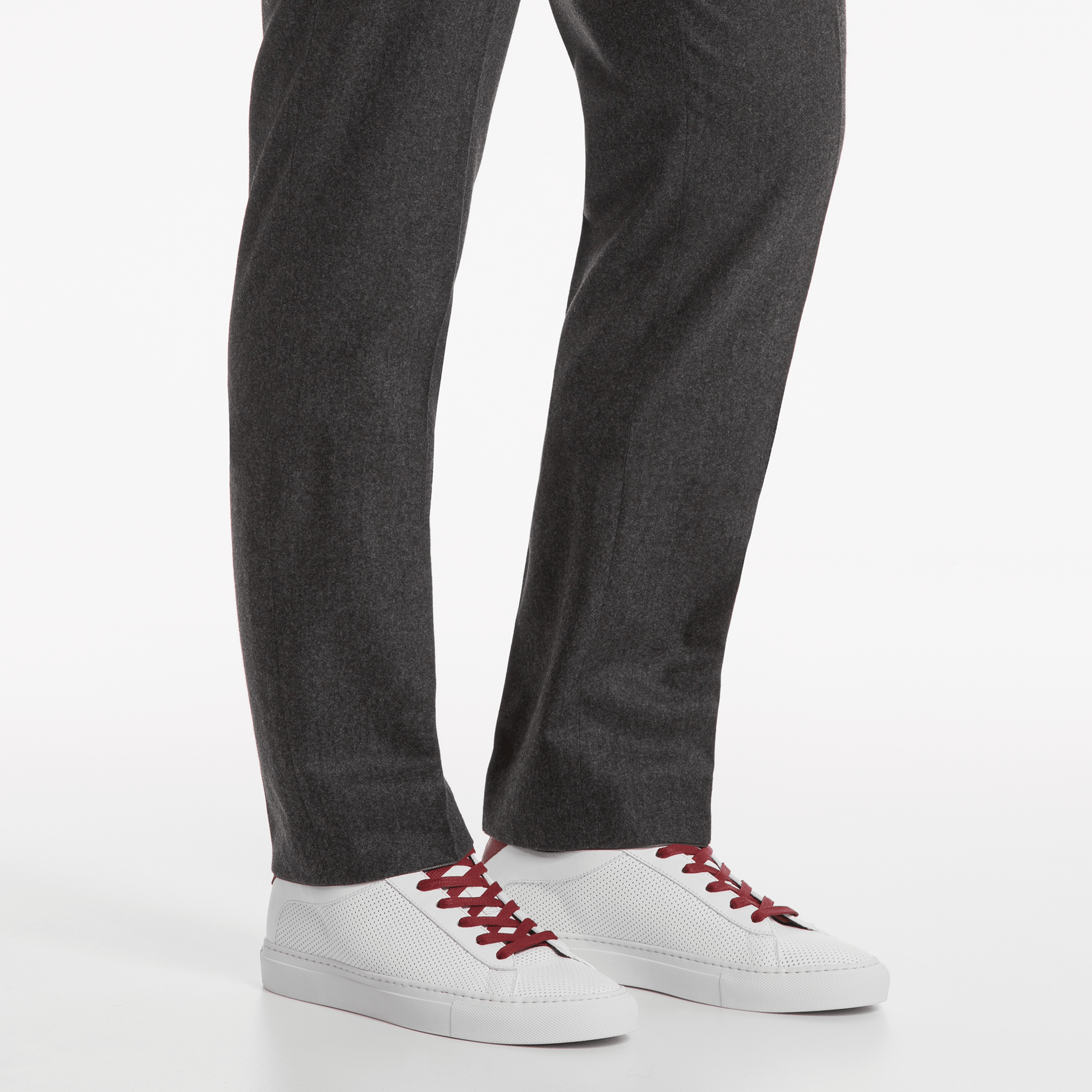 A sporty take on the Capri, with perforated premium Vitello leather for maximum breathability. Luxury materials combine with enhanced comfort to make this shoe a warmer month essential. The Perforated Capri comes in a classic white color way, with hints of red on the heel tab and laces.