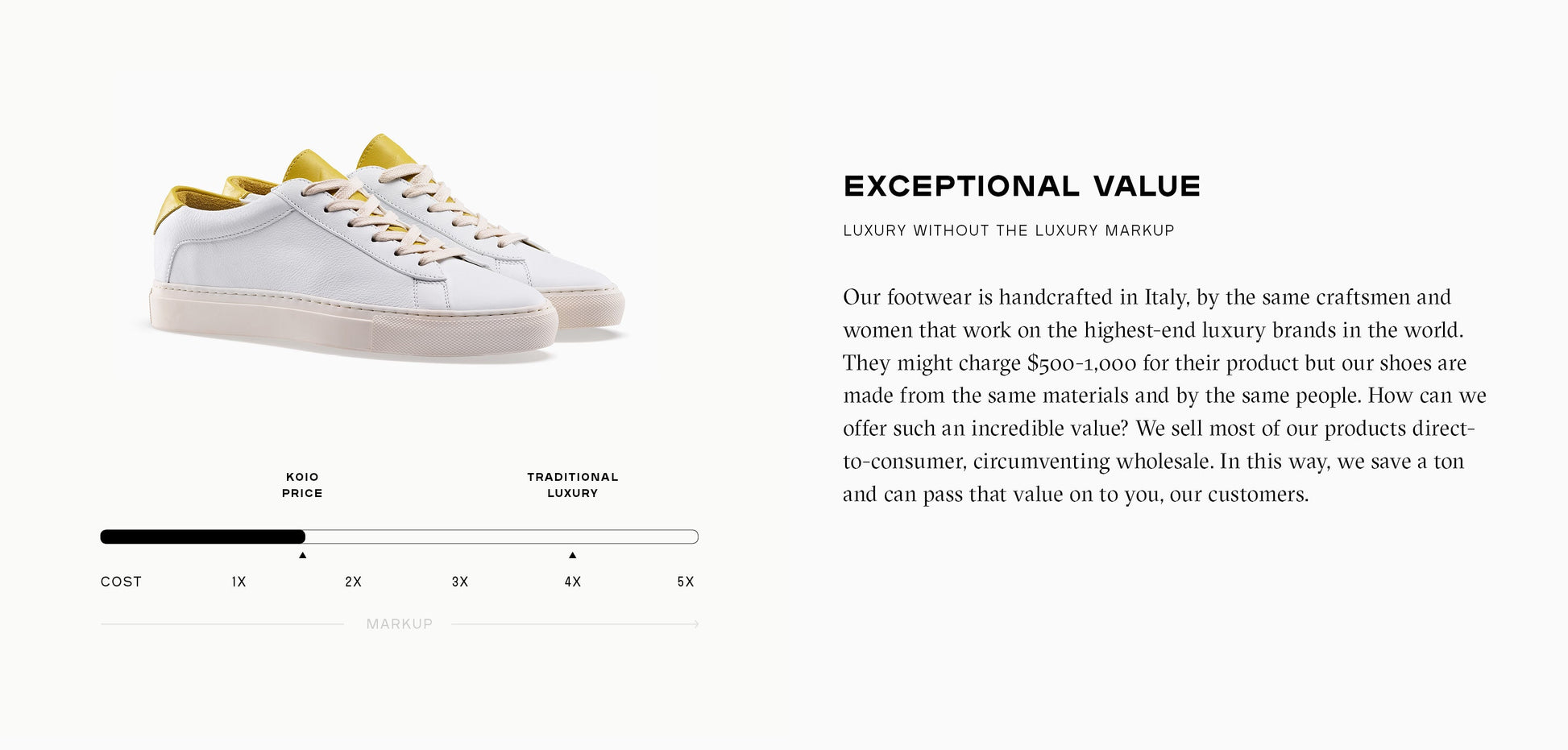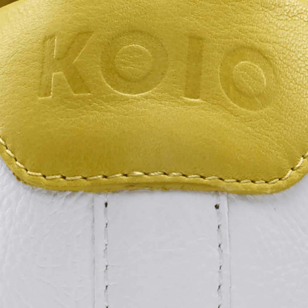 Brighten up your wardrobe and your mood with this lively version of our most-loved Capri. It's handcrafted in Italy with a yellow tongue and heel counter that really pop alongside the white leather, then set on an off-white rubber sole.