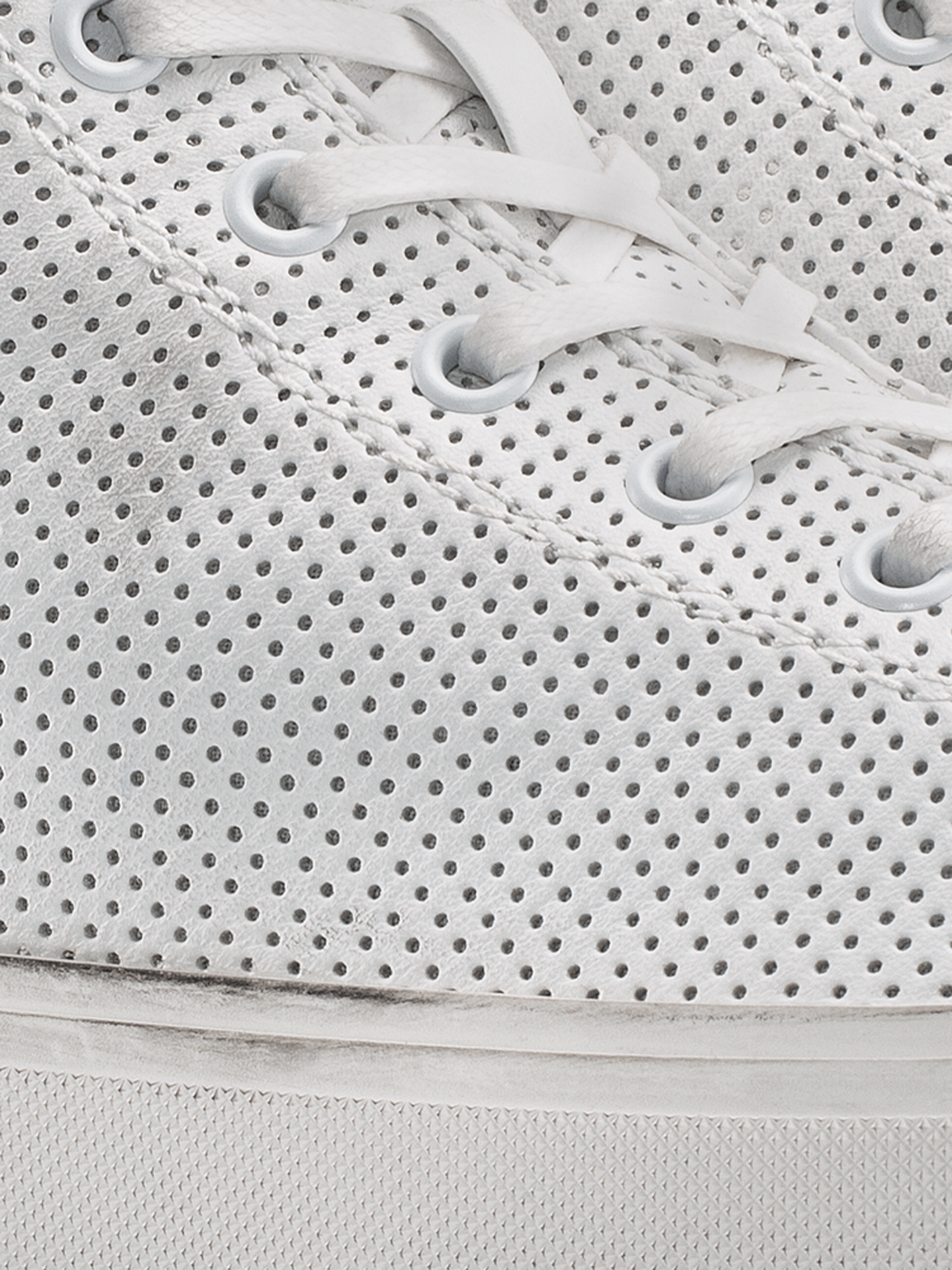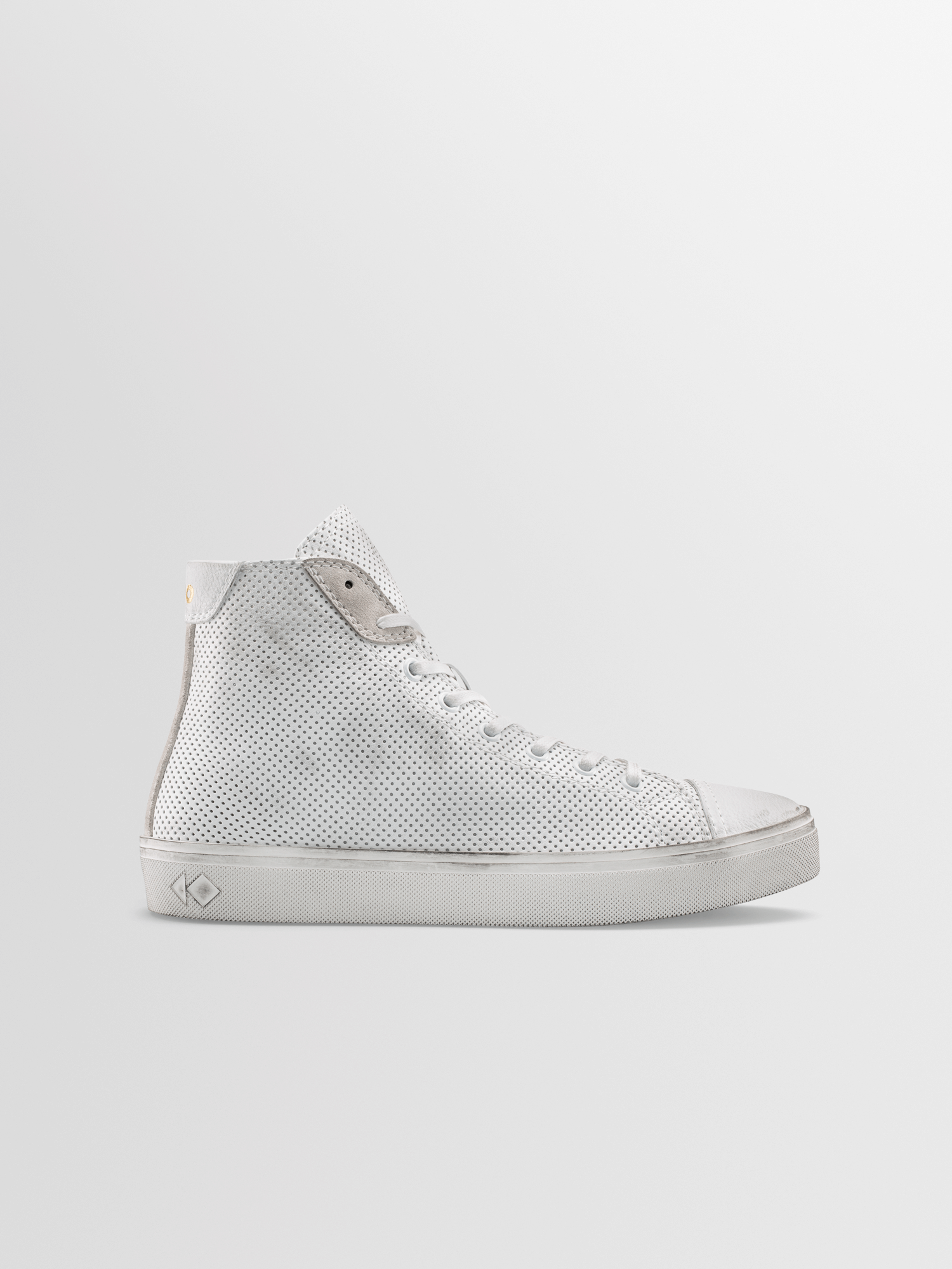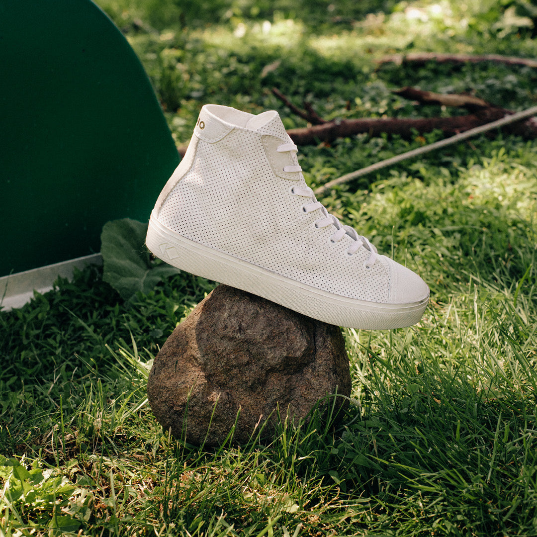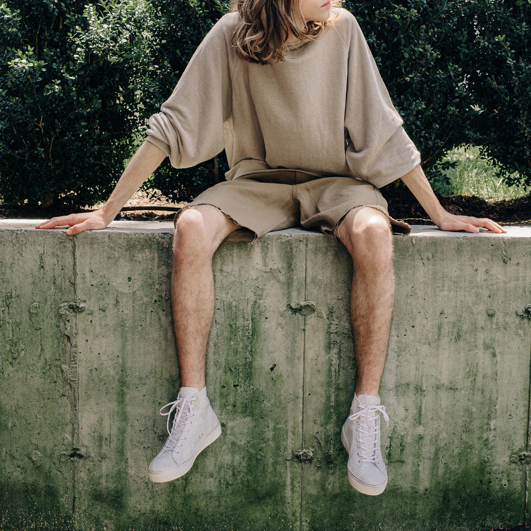 The classic high-top silhouette has never looked so sleek. Shown here in Chalk Perforated Distressed the Court is crafted in Italy with a supple, LWG Gold-certified leather upper and set on a rubber sole that’s distressed by hand to give each pair a unique, vintage look. The thick, cushioned insole molds to the natural shape of your foot, so every step feels luxuriously comfortable.