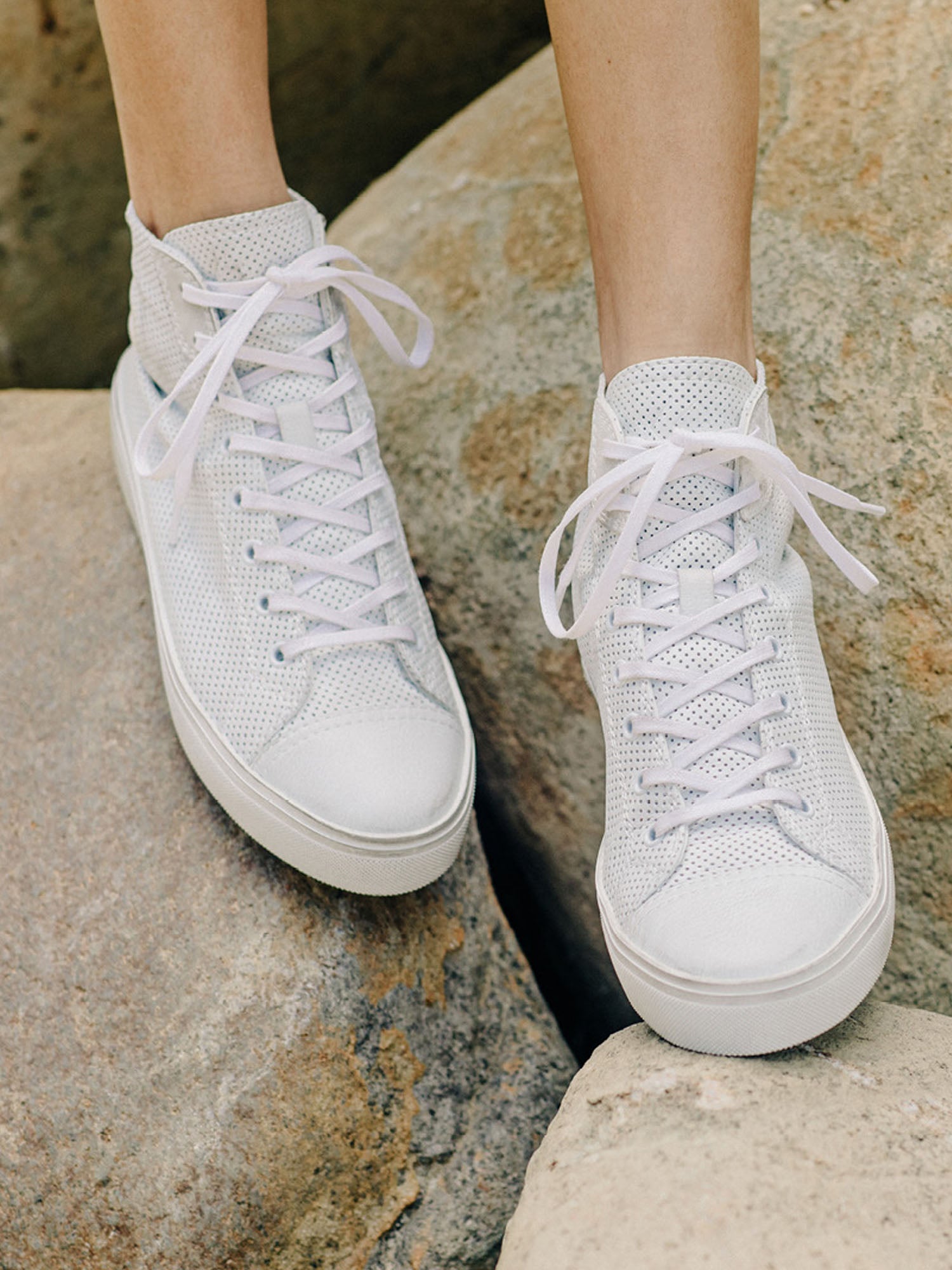 The classic high-top silhouette has never looked so sleek. Shown here in Chalk Perforated Distressed, the Court is crafted in Italy with a supple, LWG Gold-certified leather upper and set on a rubber sole that’s distressed by hand to give each pair a unique, vintage look. The thick, cushioned insole molds to the natural shape of your foot, so every step feels luxuriously comfortable.