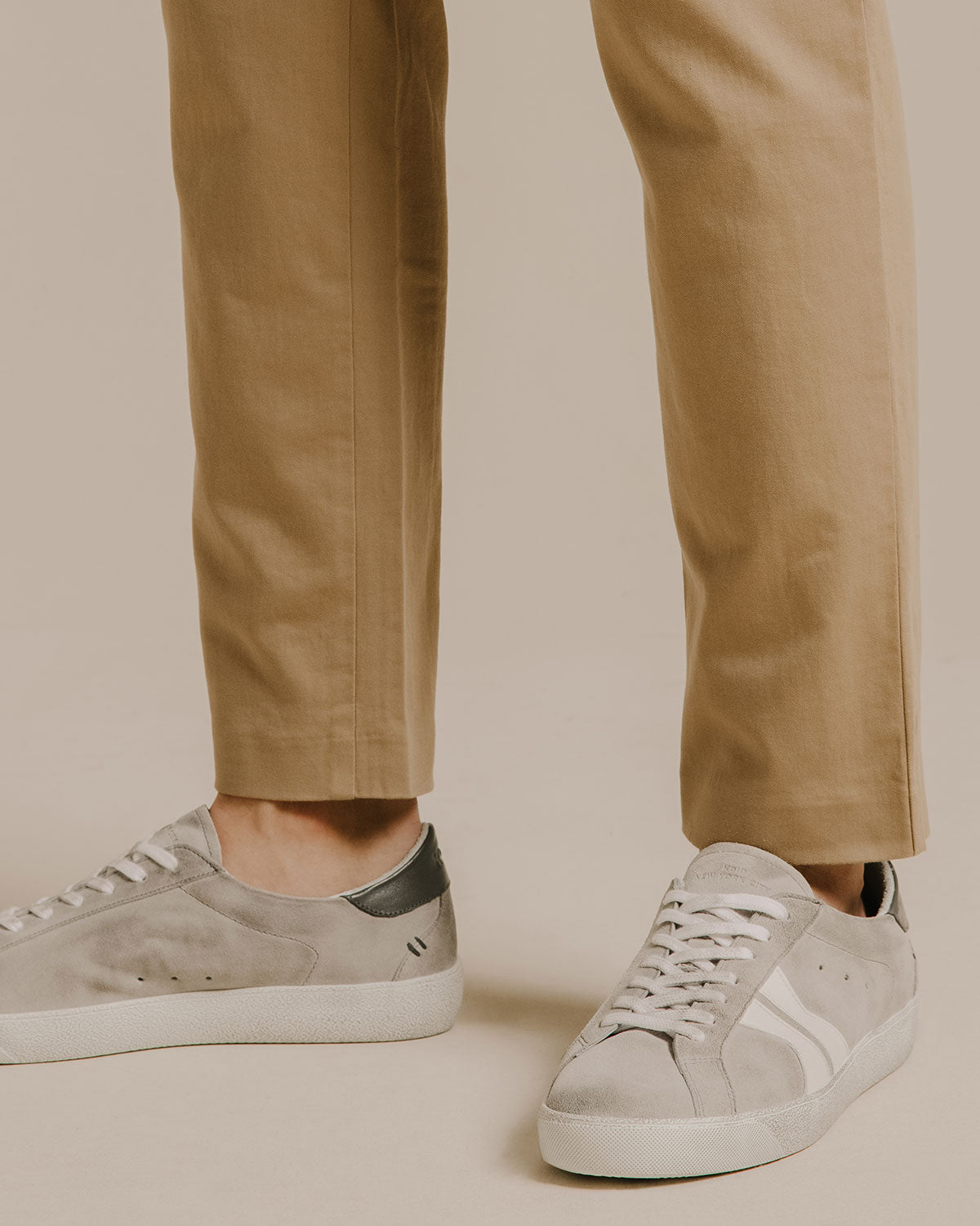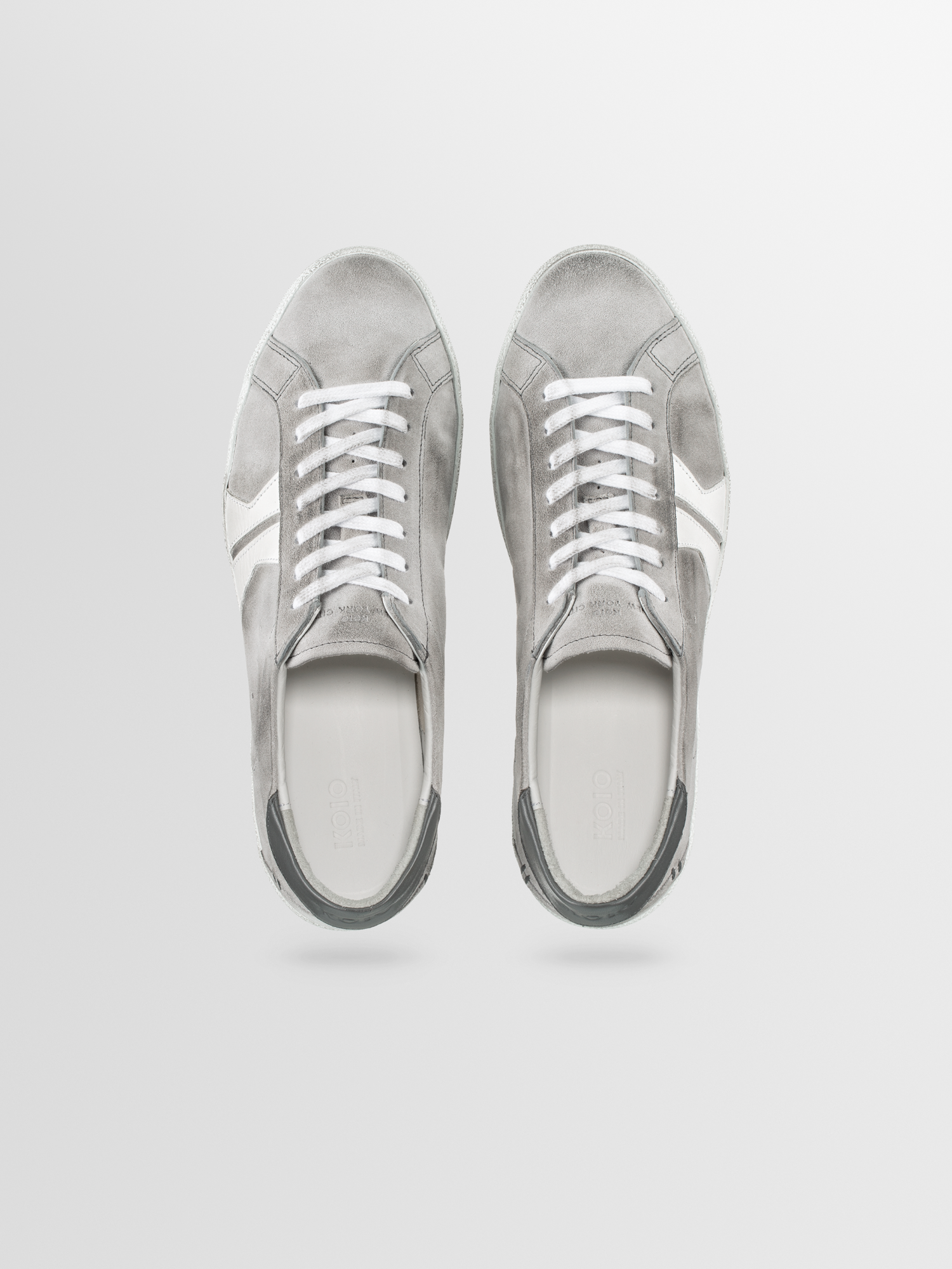 The Fabro sneaker is hand-distressed, so each pair has a uniquely authentic vintage look. Shown here in a tonal-grey and white colorway, this pair is handcrafted in Italy from Italian leather and suede. It's detailed with our signature K logo at the side and finished with hand-stitching at the heel. The breathable cotton-terry lining keeps you cool and comfortable.