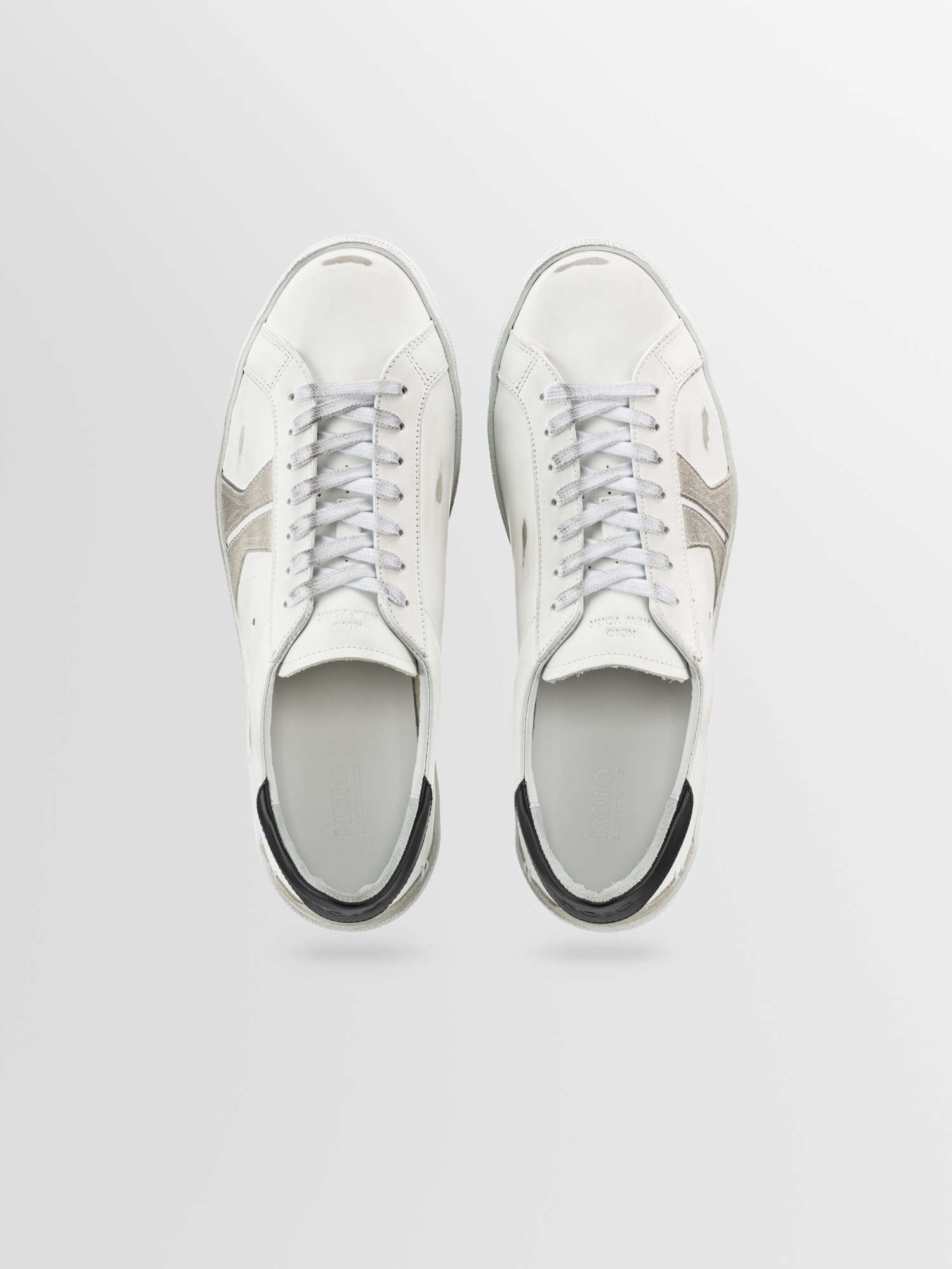The Fabro sneaker is hand-distressed, so each pair has a uniquely authentic vintage look. Shown here in a white, grey, and black Lafayette colorway, this pair is handcrafted in Italy from Italian leather and suede. It's detailed with our signature K logo at the side and finished with hand-stitching at the heel. The breathable cotton-terry lining keeps you cool and comfortable.