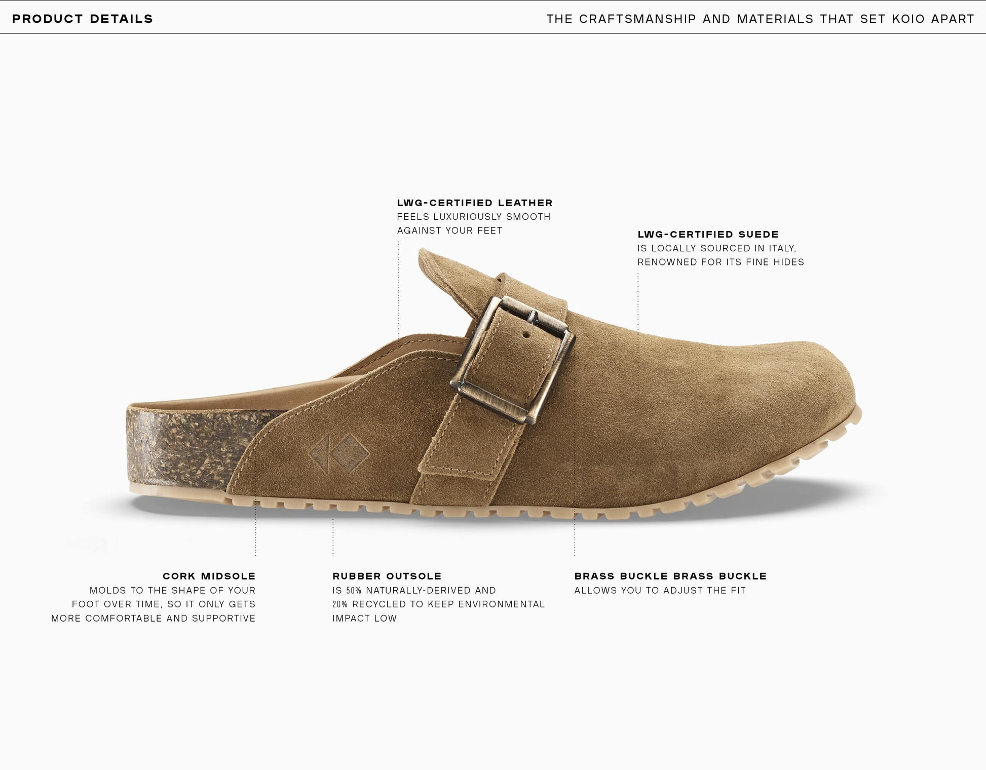 The Fuori is effortlessly cool and luxuriously comfortable, just as your everyday clog should be. Handcrafted in Italy from soft Cognac suede and lined with smooth leather, this slip-on style is fitted with a cushioned footbed and set on a cork midsole that molds to your natural shape over time. Adjust the brass buckle for a personalized fit.