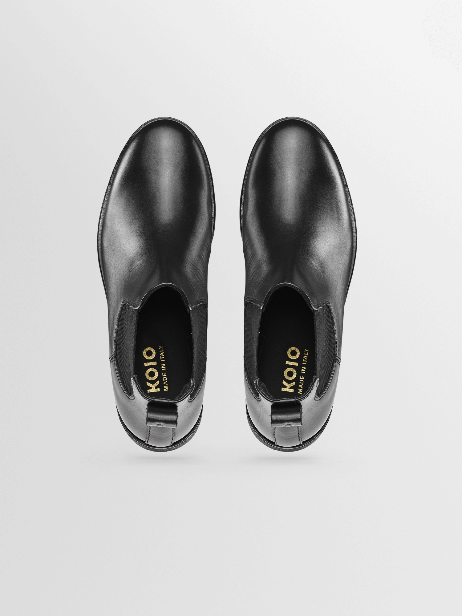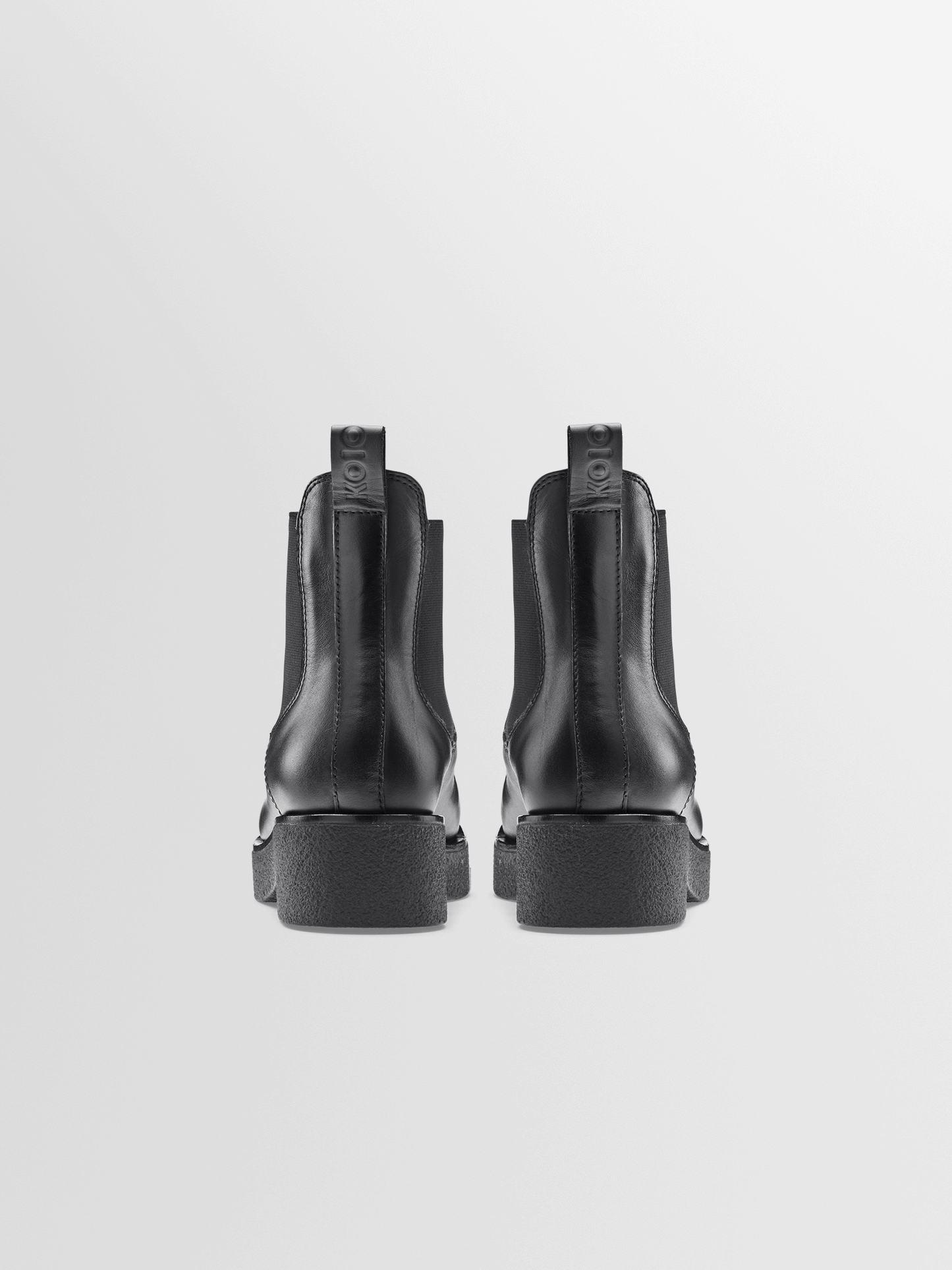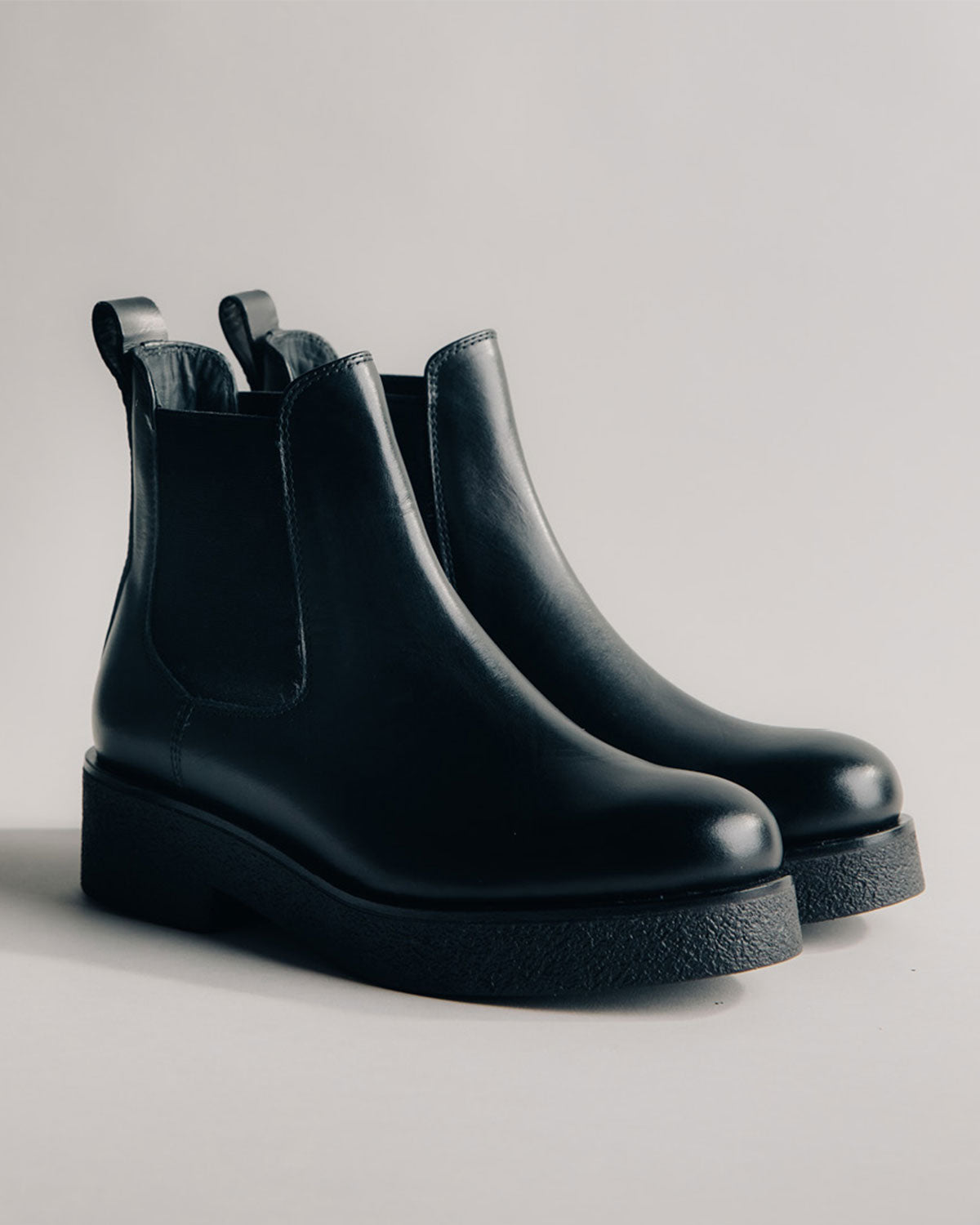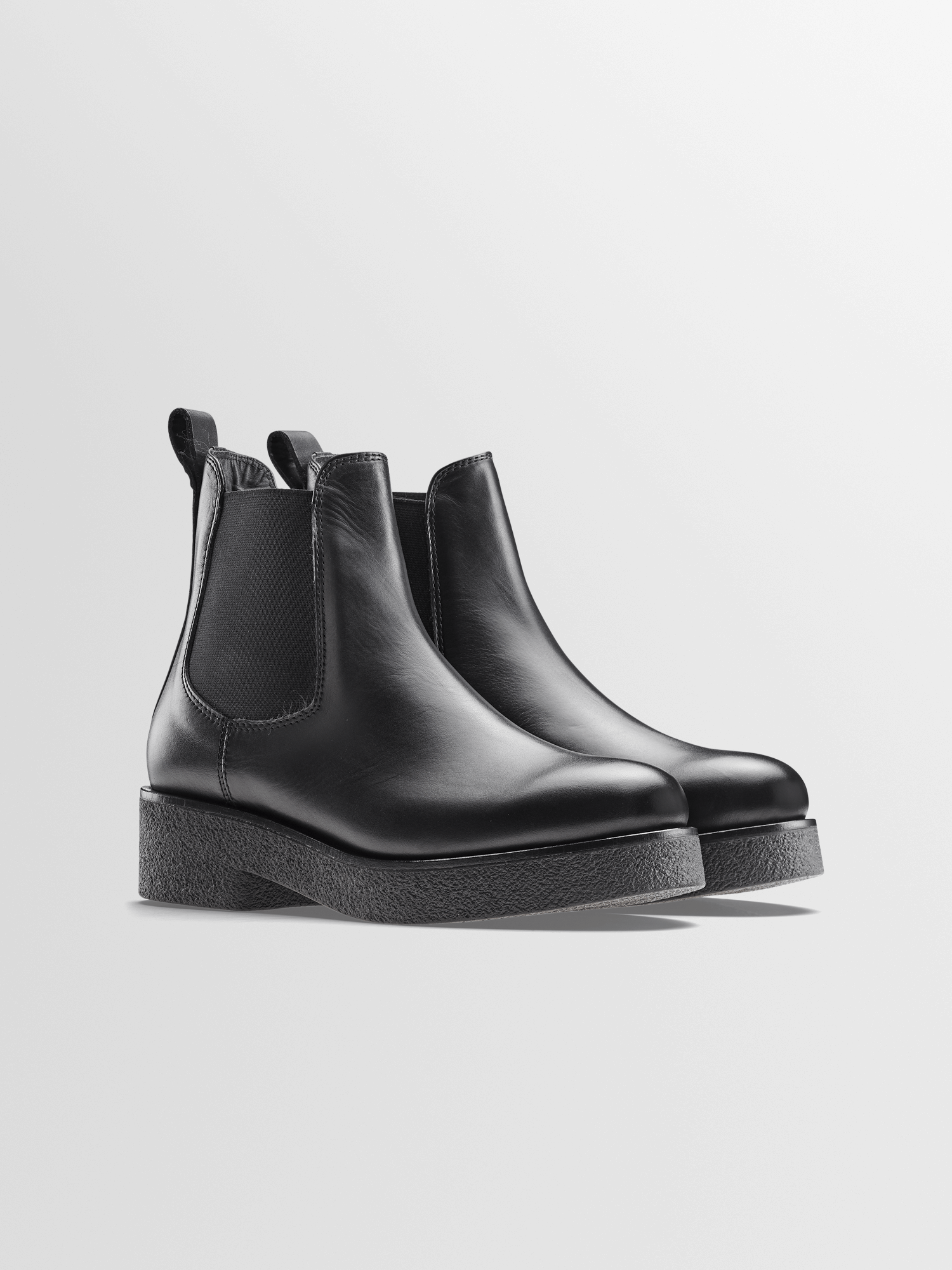 The Novara breathes bold modernity into the classic Chelsea silhouette with its platform rubber-crepe sole. Handcrafted in Italy from LWG Bronze-certified Black leather, it features elasticated side panels and a pull tab at the heel for easy on-and-off.