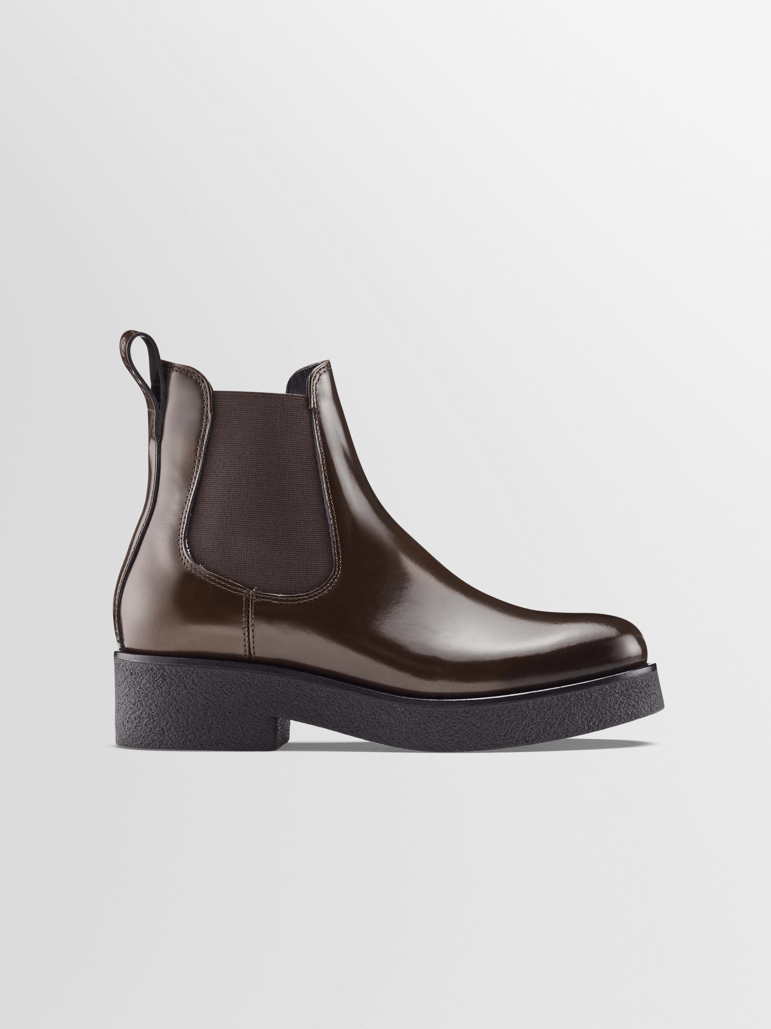 The Novara breathes bold modernity into the classic Chelsea silhouette with its platform rubber-crepe sole. Handcrafted in Italy from LWG Silver-certified Glossed Walnut leather, it features elasticated side panels and a pull tab at the heel for easy on-and-off.