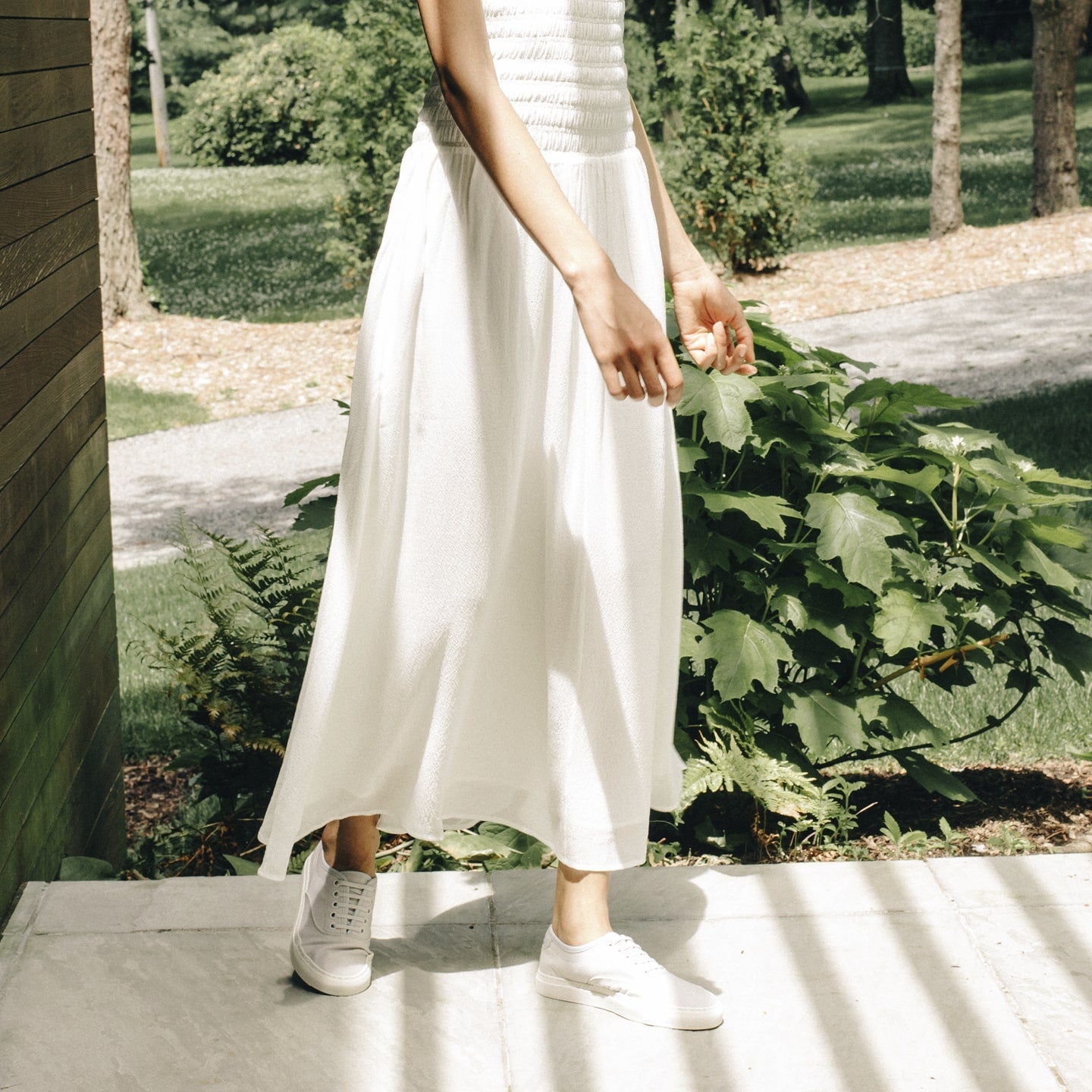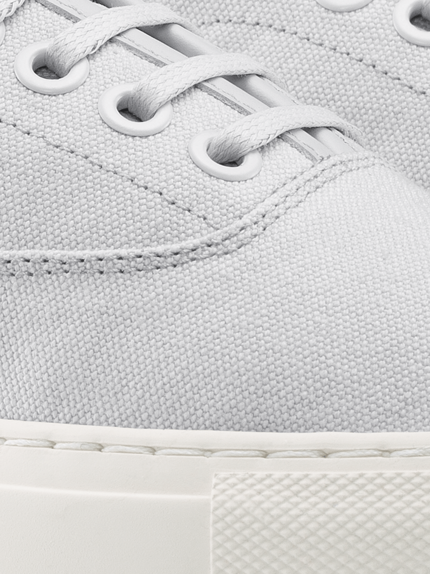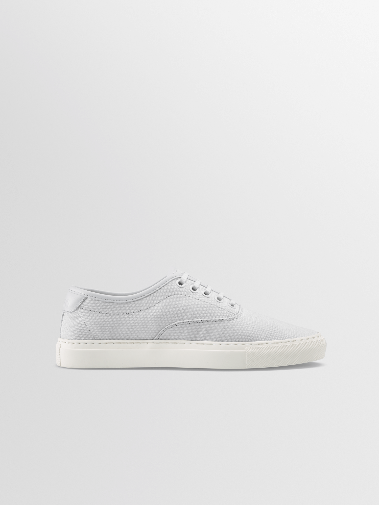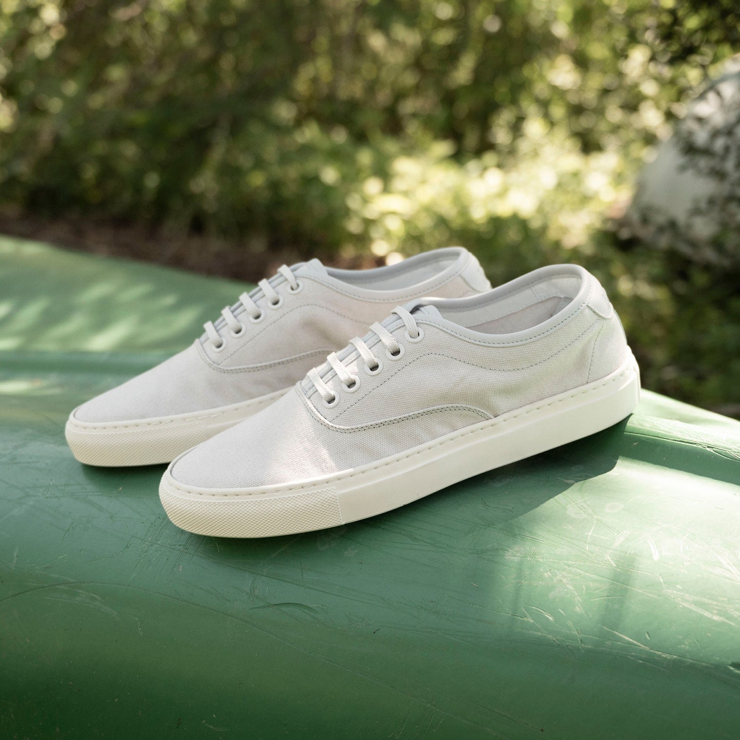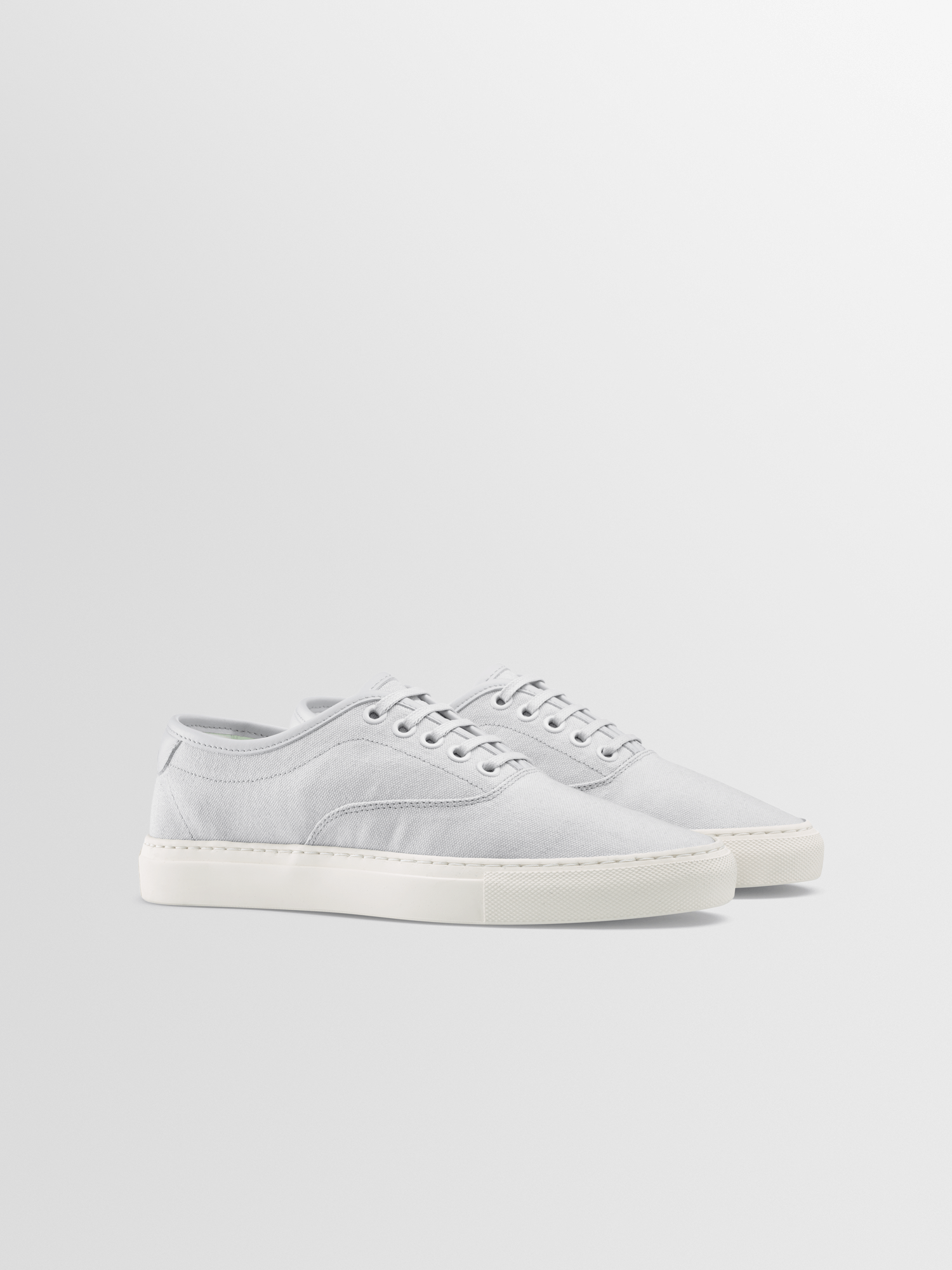 The Portofino is a classic plimsoll silhouette elevated with eco-friendly materials from Italy. Handcrafted from lightweight recycled and organic cotton-canvas, this Mist version is unlined for breathability and trimmed with tonal-leather piping. It's set on a durable rubber sole to ensure all-day comfort.
