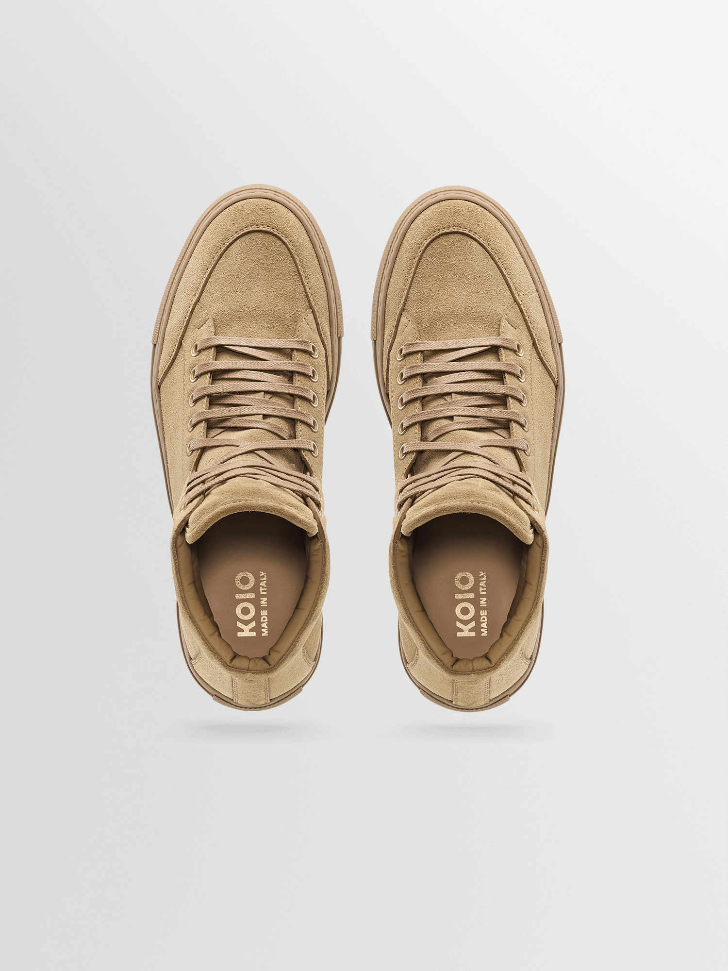 The Primo is handcrafted in Italy from luxuriously soft suede in a warm Canyon hue that you really can't go wrong with. It's set on a tonal rubber sole to ensure comfort with every step. Keep the high-top silhouette in focus by rolling up the cuffs of your pants.
