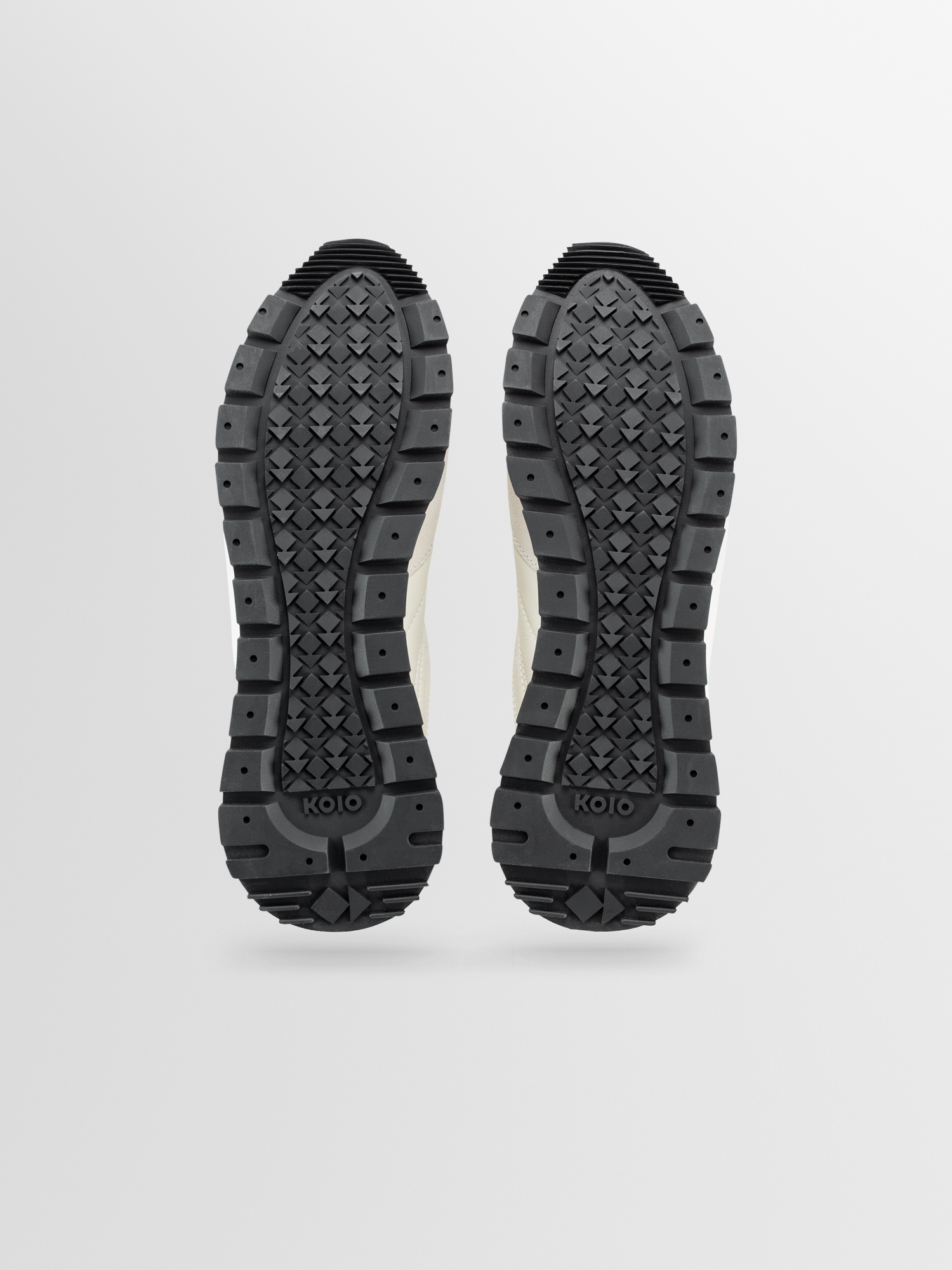The Retro Runner is a vintage-inspired silhouette modernized with cutting-edge, sustainable materials. Shown here in Cloud, it has an Italian leather and suede upper and custom Koio ReCycled™ sole that delivers comfort and flexibility through every step.