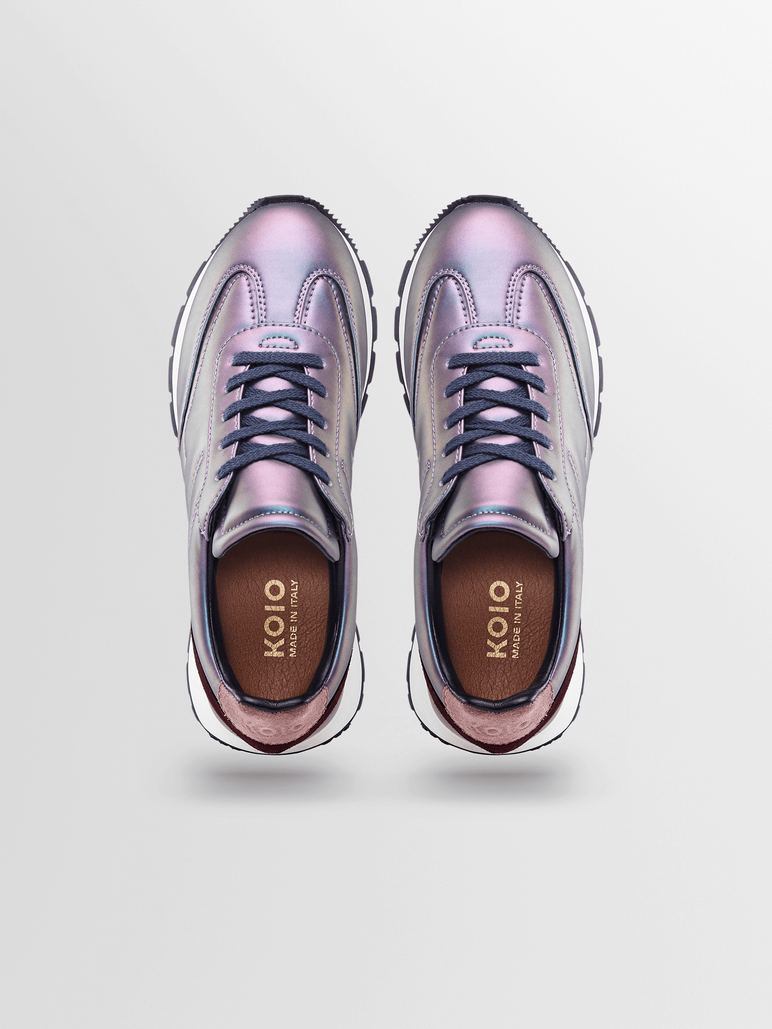 Picture this: It’s 1985, and your class is voting for senior superlatives today—you’re guaranteed to get voted ‘Best Dressed’ when everyone sees you wearing the Koio x Joe Jonas Retro Runner. Featuring an iridescent upper inspired by the 1982 film “Tron,” it’s trimmed with LWG Gold-Certified suede and set on a Koio ReCycled™ sole for unparalleled comfort. You’re going to look so rad.