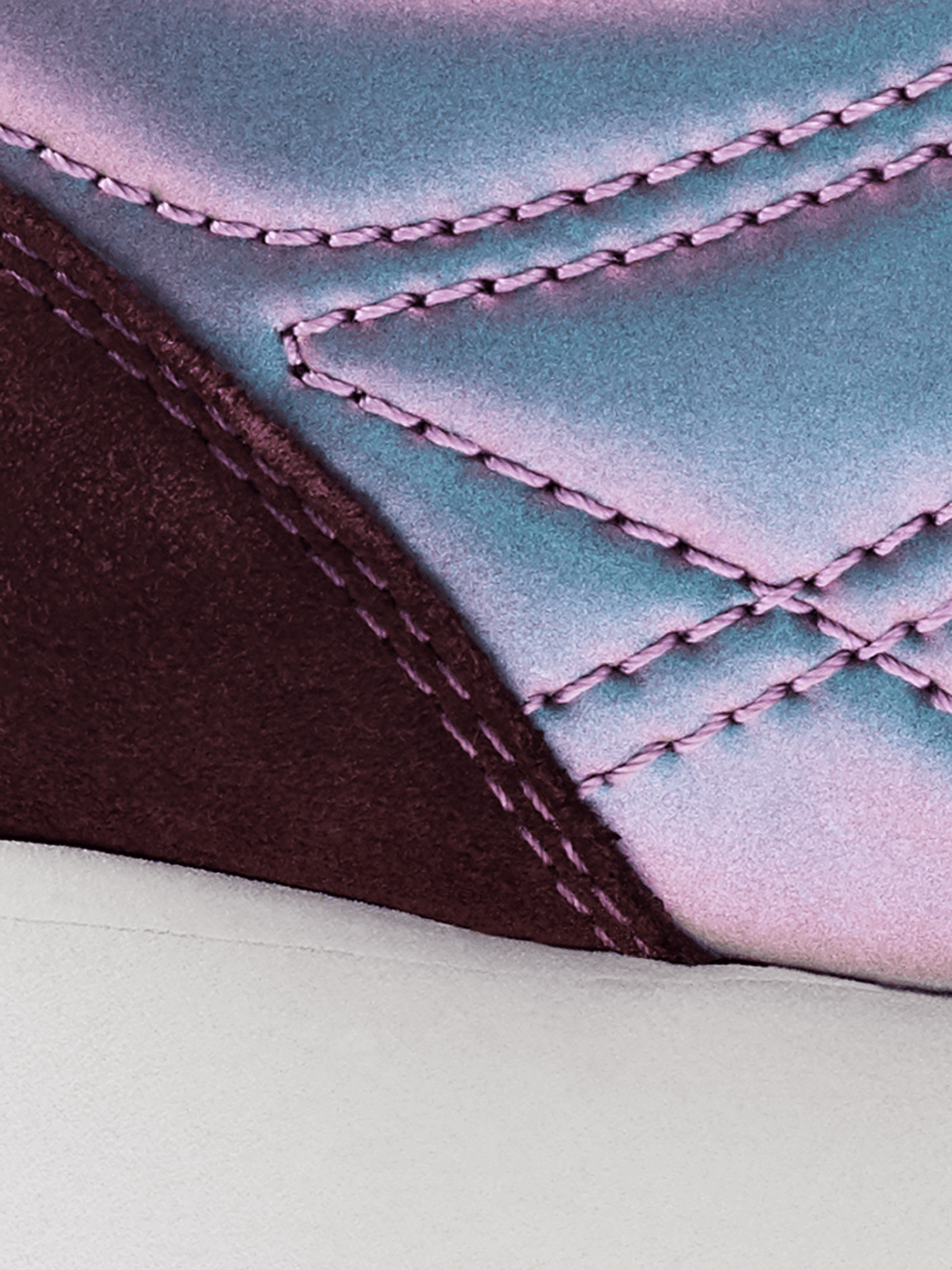 Constructed with iridescent tech fabric and LWG Gold-certified Italian suede