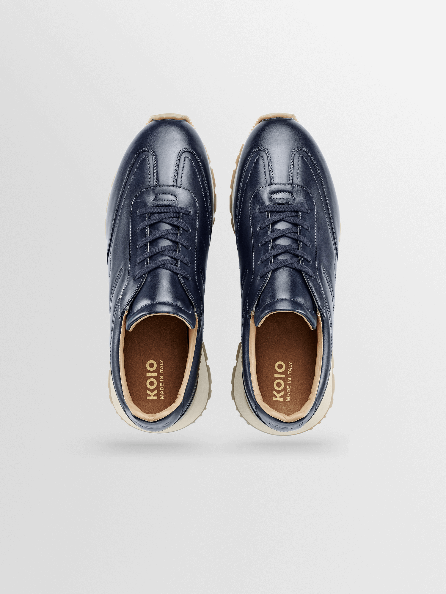 The Retro Runner is a vintage-inspired silhouette modernized with cutting-edge, sustainable materials. Handcrafted from vegetable-tanned leather in a rich Regatta hue, it’s set on a custom Koio ReCycled™ sole that delivers comfort and flexibility through every step.