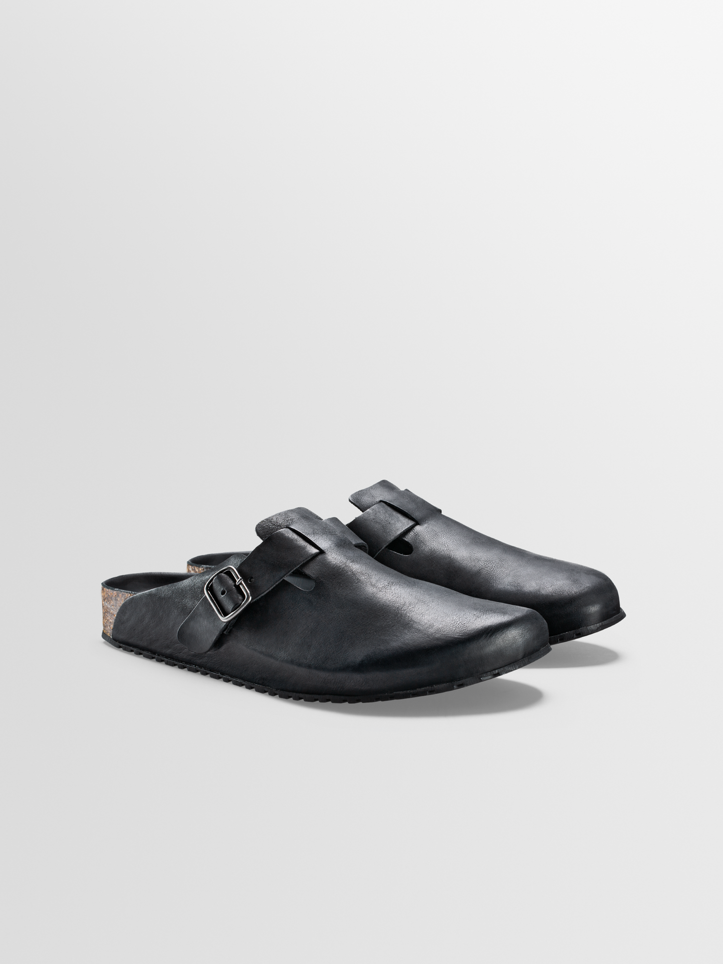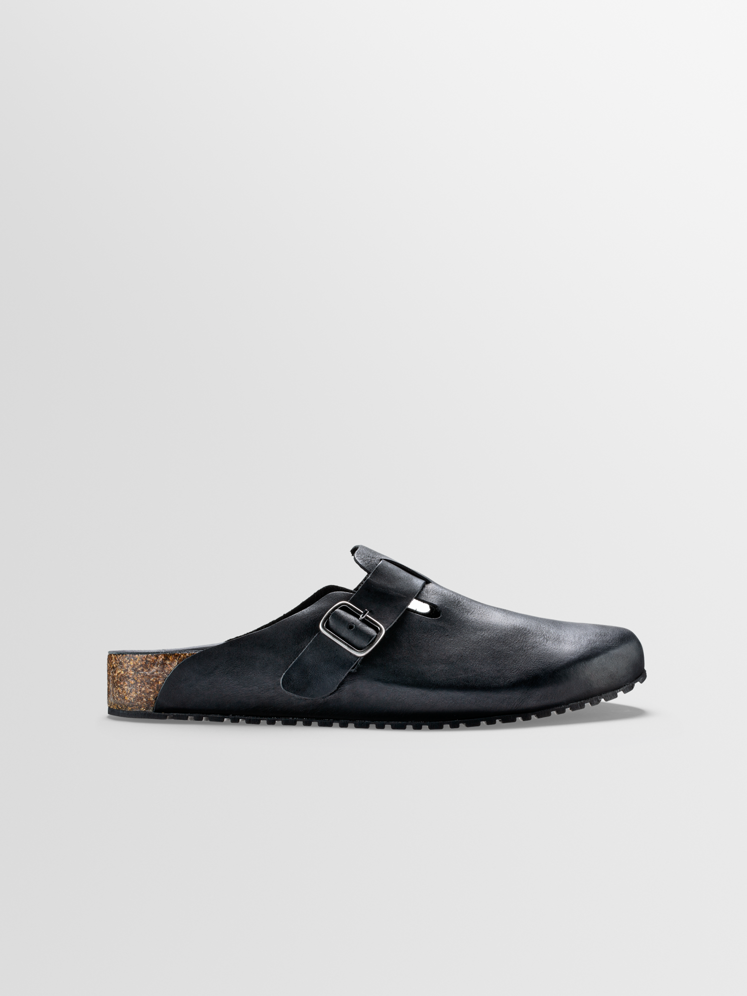 The Salerno is not your standard everyday clog—it's lighter in weight and looks so elevated. This Nero pair is handcrafted from smooth Italian leather and detailed with a slim buckle-fastening strap for an adjustable fit. Fitted with a cushioned footbed that molds to your natural shape for a personalized feel, it's set on a durable cork and rubber sole.
