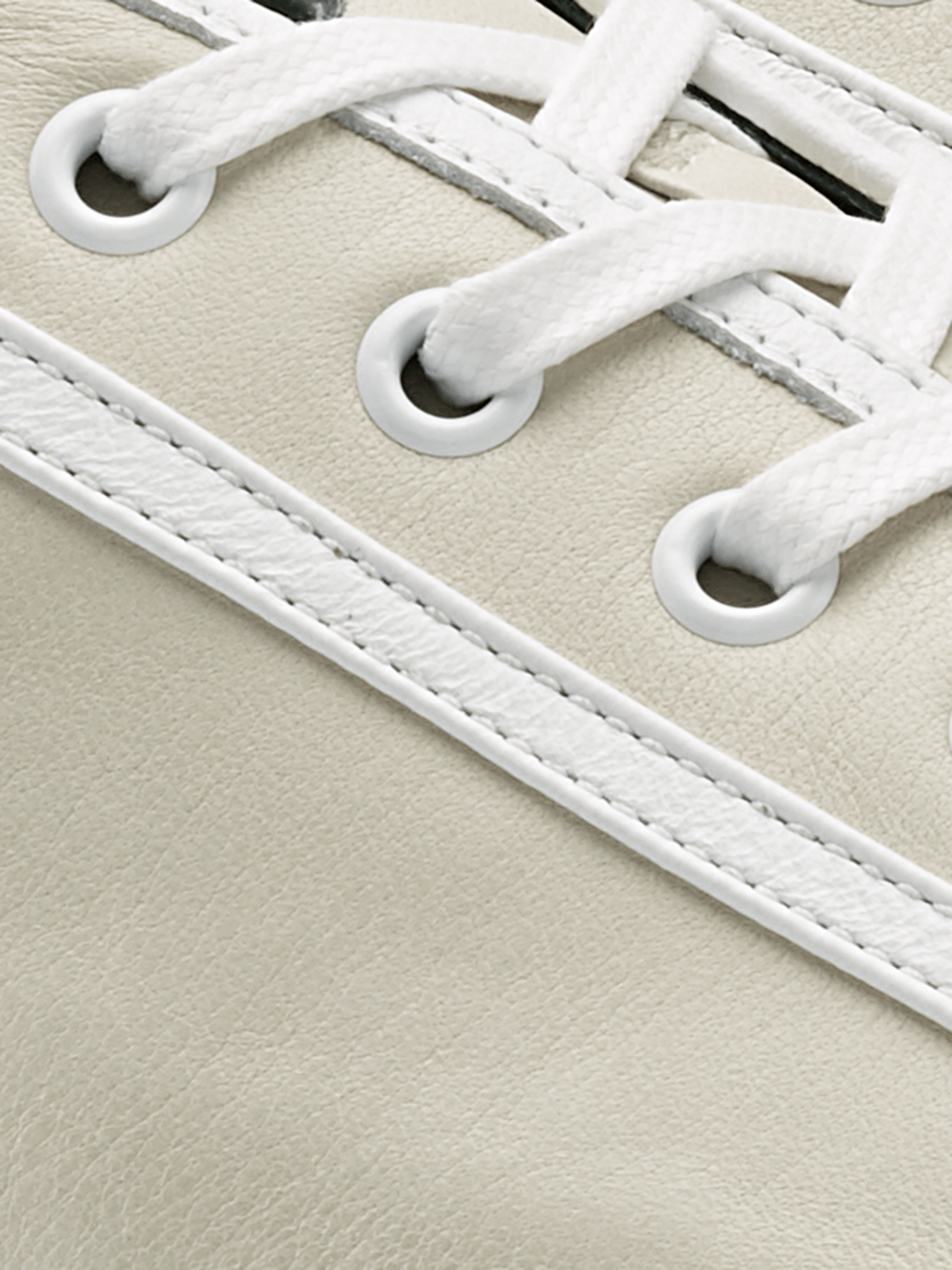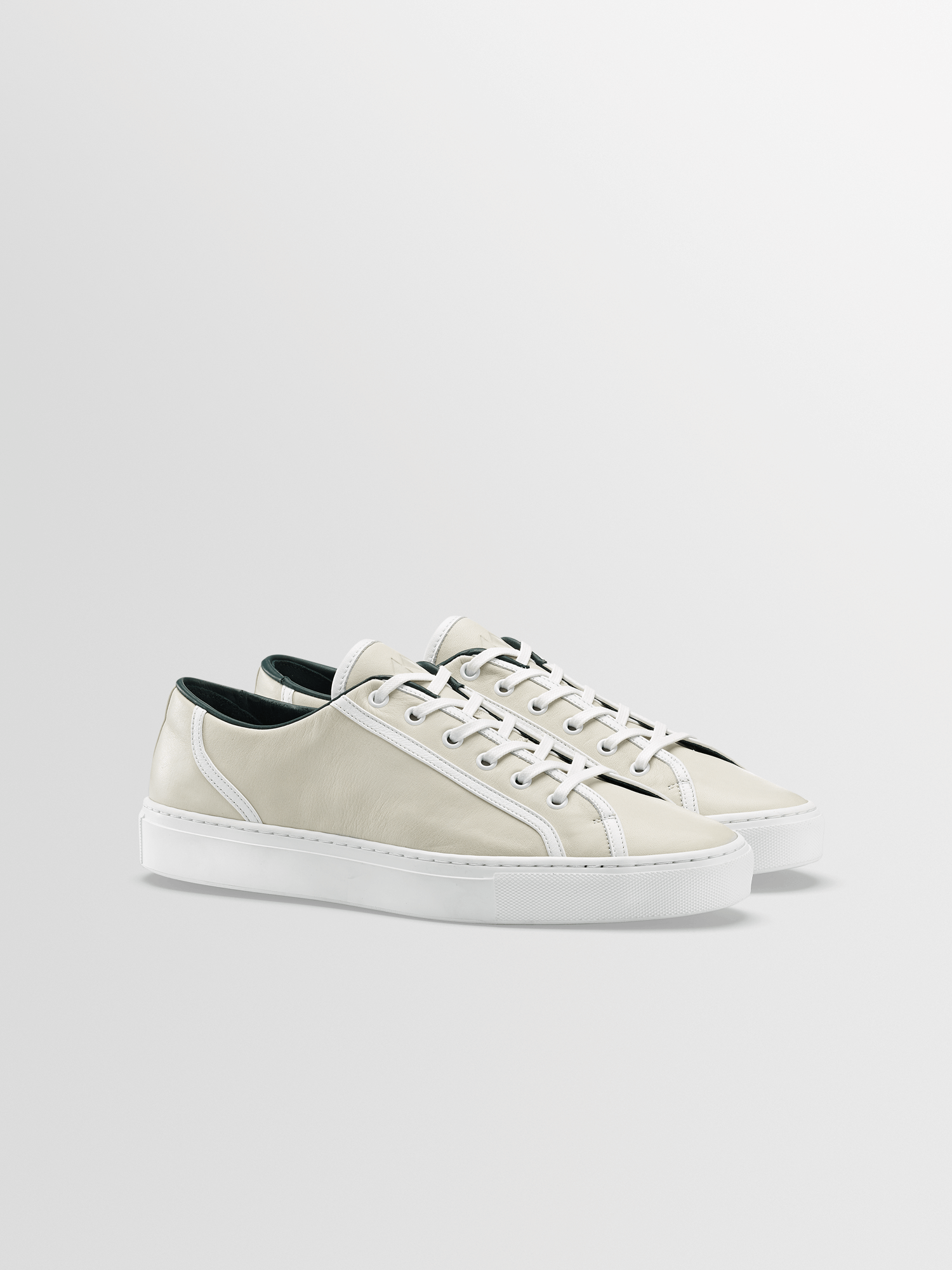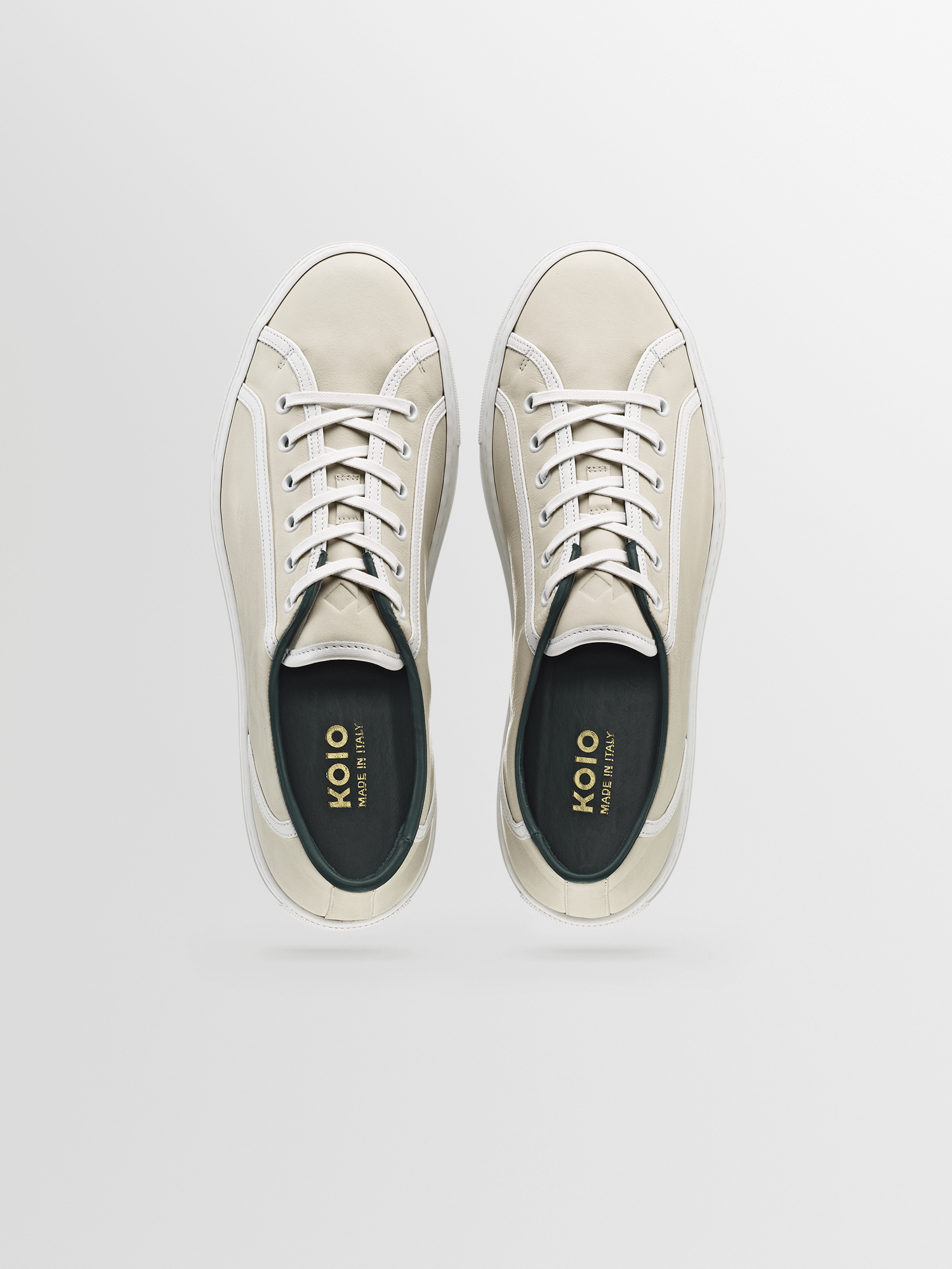 Inspired by tennis shoes from the ‘70s, the Torino has a Sesame upper detailed with sporty white stripes along the edges. It’s handcrafted in Italy from LWG-certified sustainable Italian leather and set on our custom-developed rubber sole.