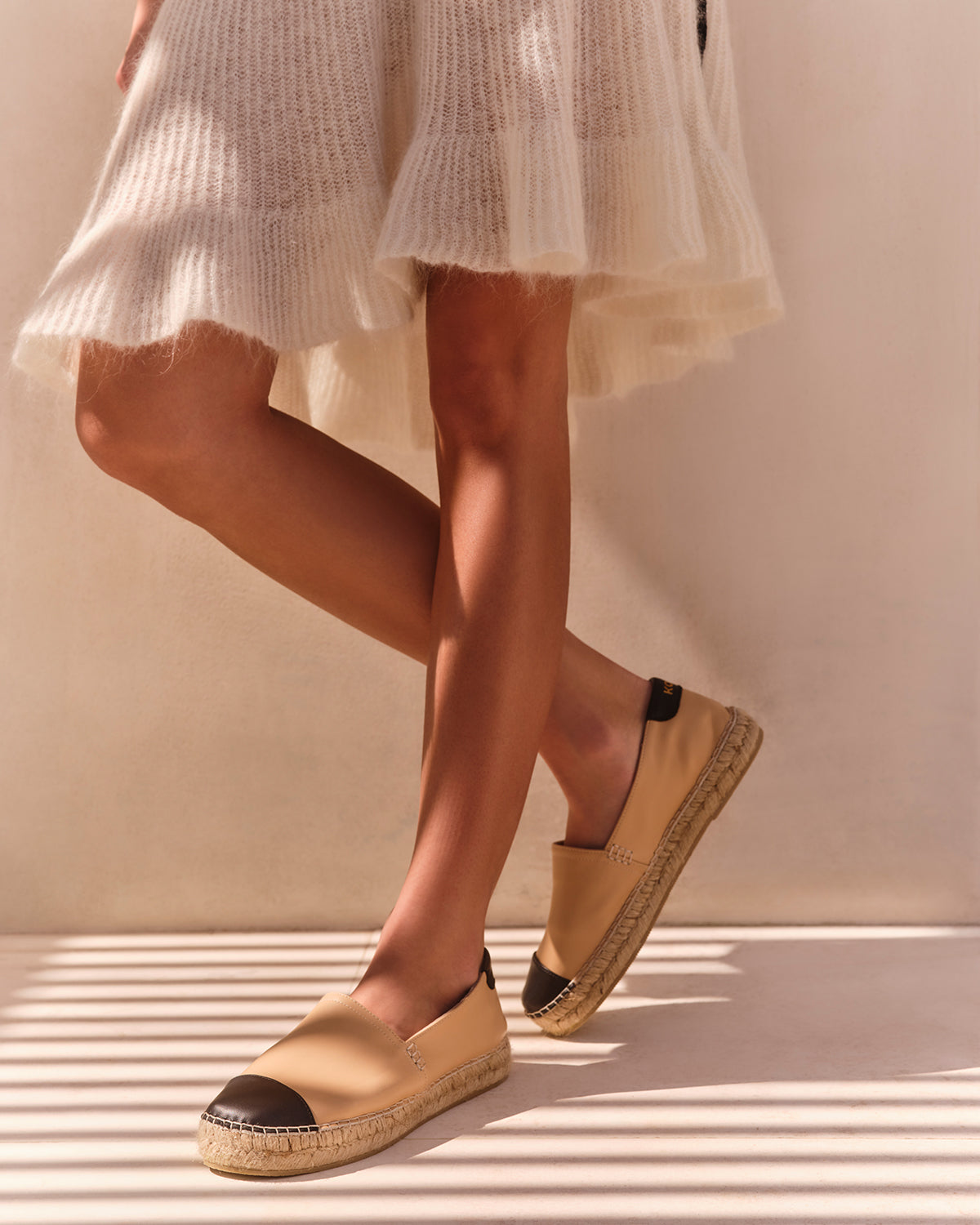 Tula is not your standard espadrille—it's detailed with our signature perforated 'KK' lettering at the vamp that lends it a modern look and enhances breathability. This Cortado colorway is handcrafted in Catalonia, Spain from luxuriously soft Italian leather and set on a classic jute and rubber sole.